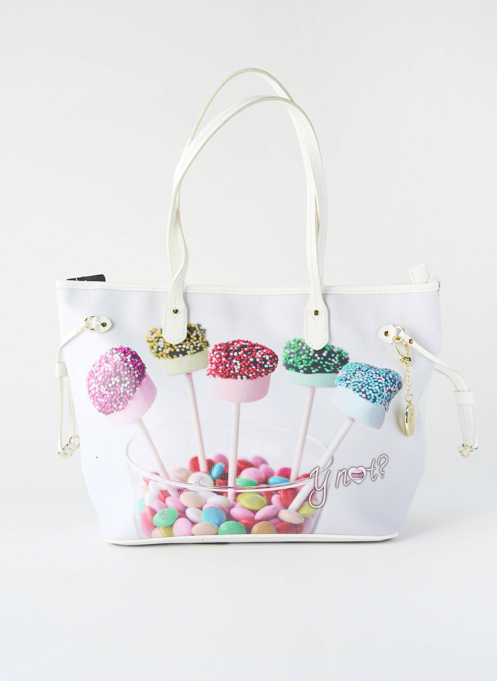 Craquez pour ce sac Y NOT? pour femme, idéal pour apporter une touche de fantaisie à votre style tout en profitant d’un vrai bon plan. Avec son imprimé gourmand mettant en avant des cake pops colorés et des bonbons, ce sac coloré et original attire les regards et réveillera toutes vos tenues sans vous ruiner. Ses anses pratiques et sa grande capacité en font un allié du quotidien, parfait pour celles qui veulent allier originalité et petits prix.