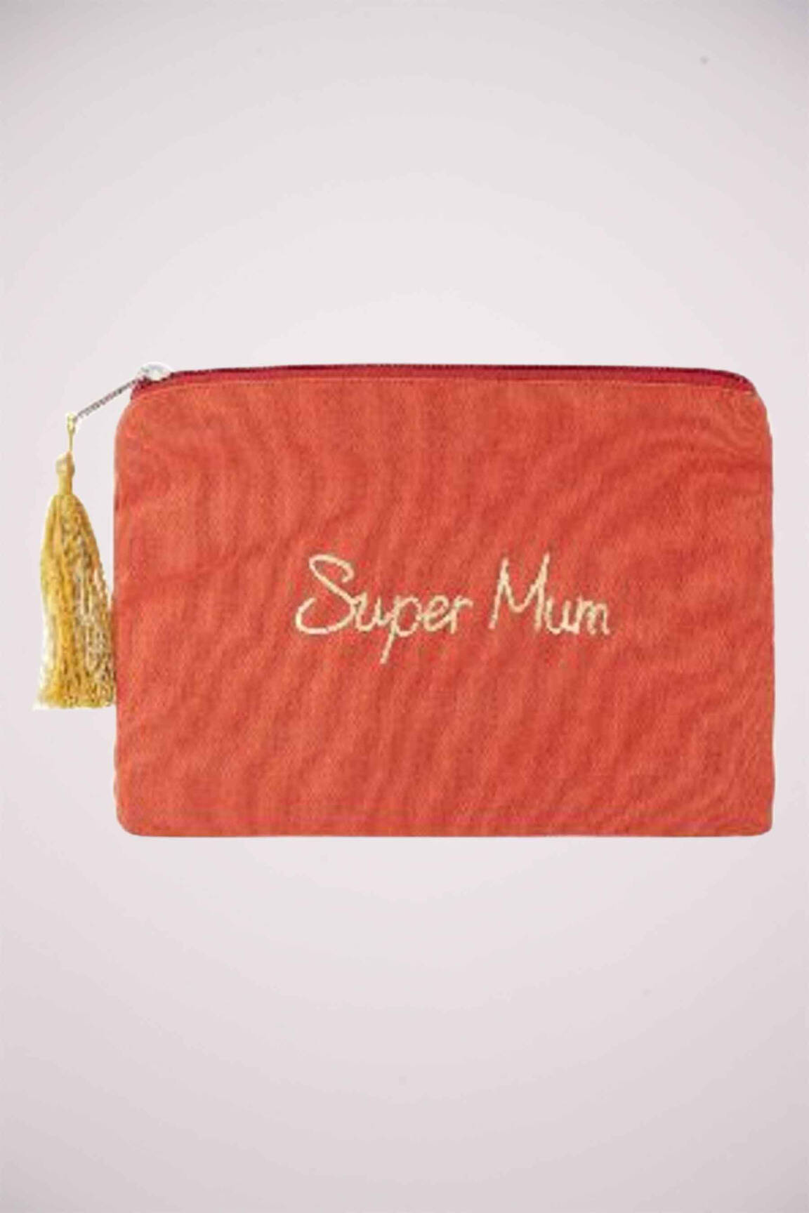 Craquez pour cette trousse de toilette PIECES pour femme, un véritable bon plan pour garder tous vos essentiels à portée de main sans vous ruiner. Son design tendance à la teinte chaude est rehaussé d'une jolie inscription "Super Mum" brodée à l'avant, et la touche fantaisie du pompon doré apporte un charme supplémentaire. Compacte et élégante, cette trousse pratique à petit prix sera votre alliée idéale au quotidien comme en voyage, parfaite pour faire rimer style et économies.