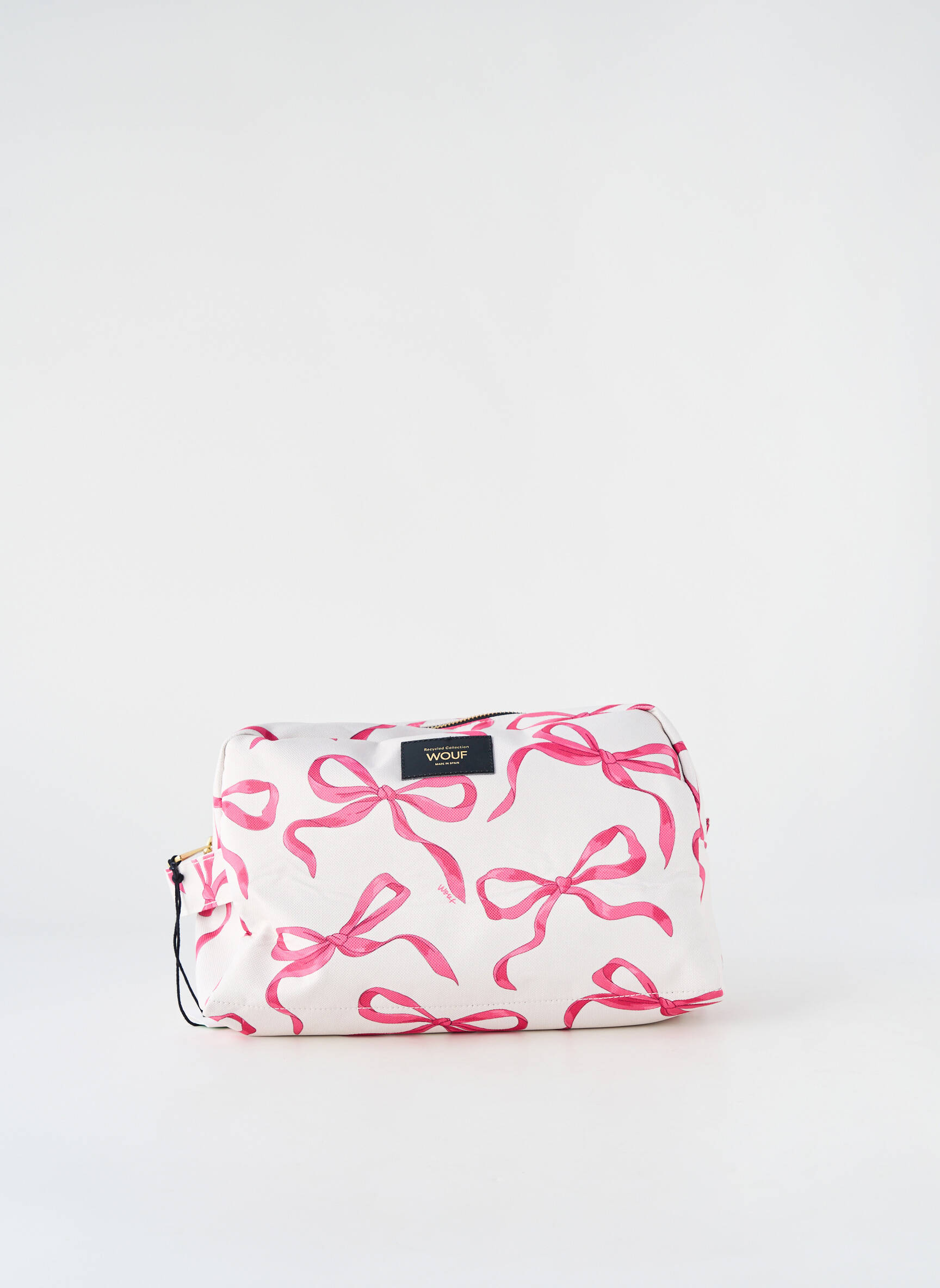 Profitez de cette trousse WOUF pour femme à prix mini, idéale pour organiser vos essentiels avec style grâce à son motif joyeux de nœuds roses sur fond blanc. Sa grande capacité et son design tendance en font un accessoire pratique et malin pour celles qui aiment allier élégance et petits prix.