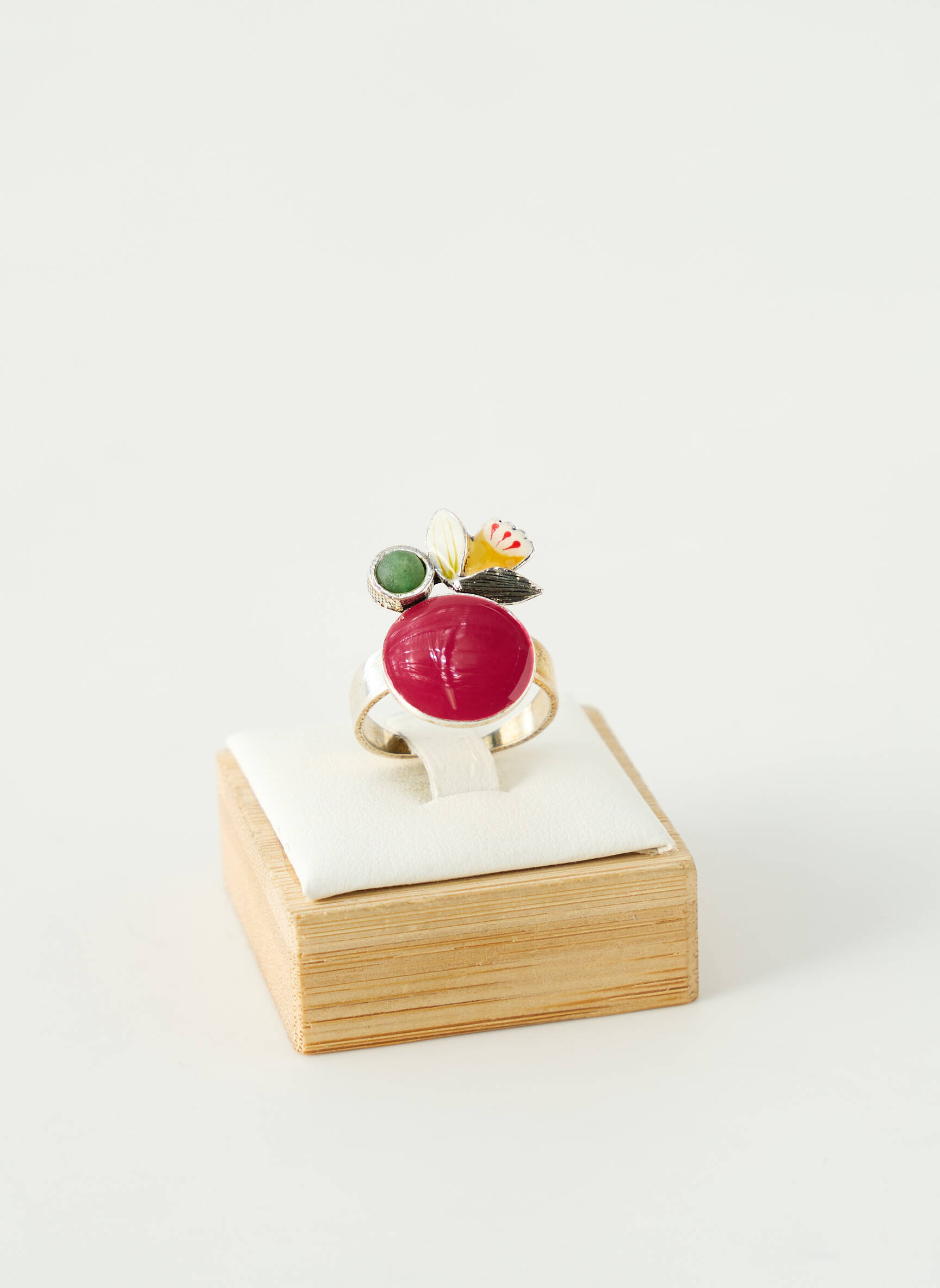 Craquez pour cette bague femme signée TARATATA, un véritable bon plan pour celles qui souhaitent accessoiriser leur look avec originalité sans se ruiner. Ce bijou se distingue par son cabochon rouge intense mis en valeur par des détails colorés en relief qui apportent une touche fantaisie et artisanale, parfaite pour donner du pep’s à toutes vos tenues à petit prix. Profitez d’un accessoire irrésistible à tarif doux pour affirmer votre personnalité tout en faisant de vraies économies.