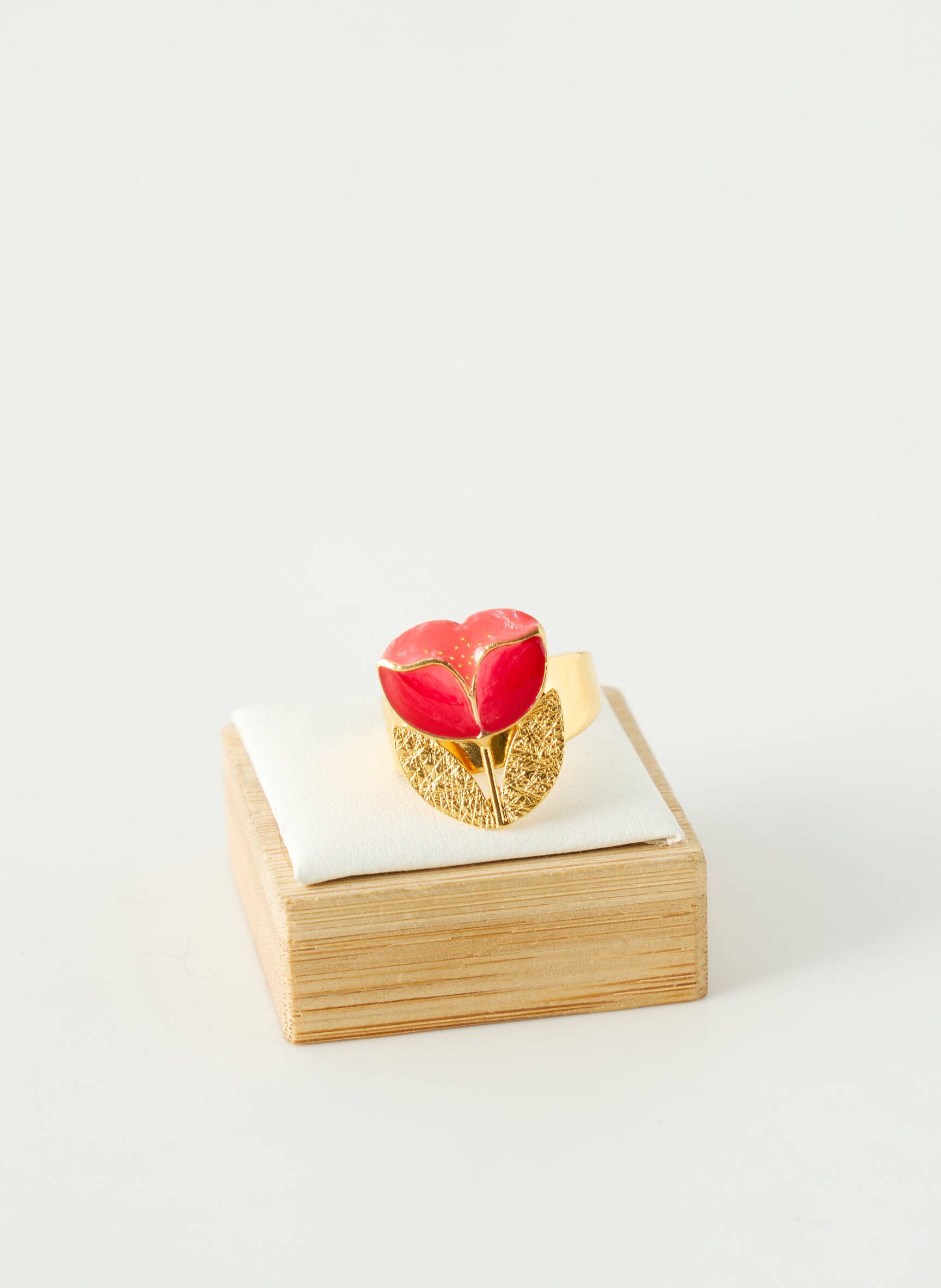 Craquez pour cette bague de la marque TARATATA à prix mini, parfaite pour ajouter une touche d’originalité à votre look sans vous ruiner. Son motif feuille doré délicatement travaillé, surmonté d’un cœur rouge vif, apporte une note élégante et joyeuse, idéale pour sublimer toutes vos tenues avec style tout en faisant une belle économie sur un bijou de créateur.