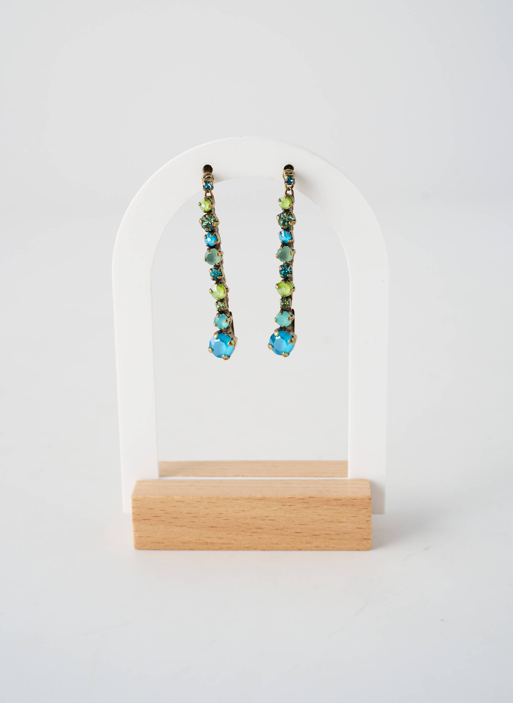 Ces boucles d’oreilles apportent instantanément une note sophistiquée à une tenue du quotidien comme à une robe de soirée. Pour les mettre en valeur, privilégiez des coiffures relevées ou des cheveux lâchés derrière les oreilles. Vous pouvez les associer à un collier discret ou à un bracelet fin, de préférence dans des tonalités métalliques ou avec quelques touches de bleu ou de vert pour rappeler leur éclat. Elles trouvent parfaitement leur place aussi bien avec un look décontracté, comme un joli chemisier uni, qu’avec une tenue plus chic pour une occasion spéciale.
