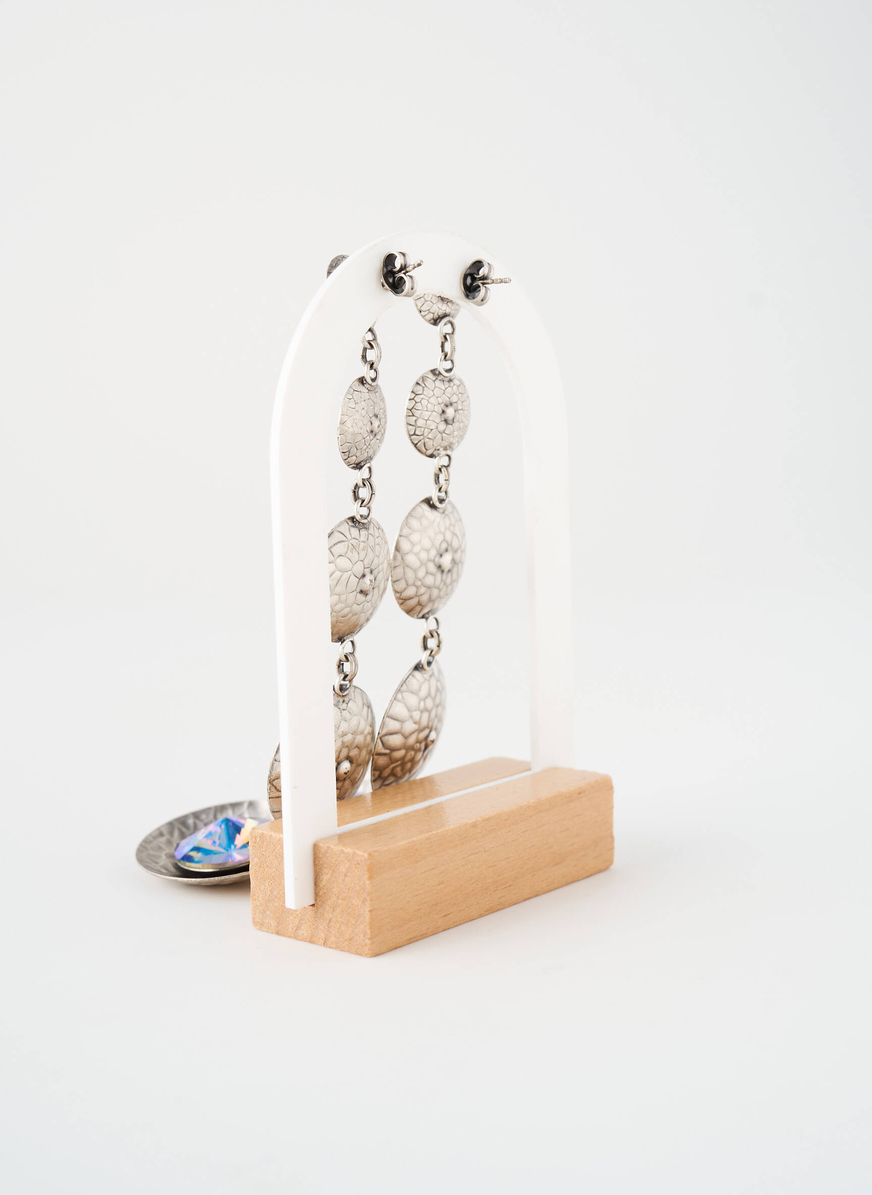 Ces boucles d’oreilles se prêtent à merveille à une coiffure relevée pour laisser briller leur jeu de lumière, idéales avec une robe noire pour une allure sophistiquée ou un look décontracté pour ajouter une touche de fantaisie. Pour un effet harmonieux, associez-les à une pochette argentée ou à des chaussures à reflets métalliques, en veillant à garder les autres accessoires discrets afin de mettre toute l’attention sur leur design éclatant.