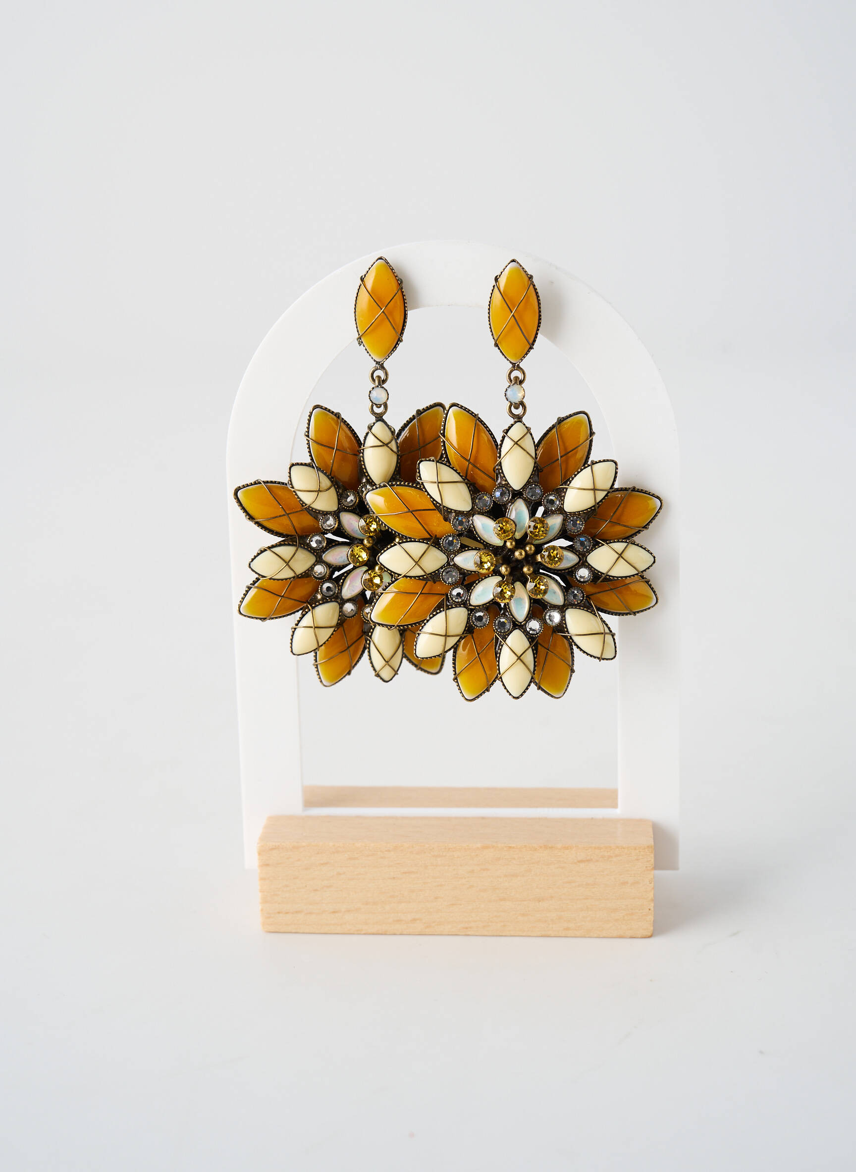 Pour mettre en valeur ces boucles d’oreilles, l’idéal est de relever vos cheveux en chignon ou en queue-de-cheval pour laisser toute la place à leur éclat. Elles se marient parfaitement avec une tenue unie, de préférence dans des tons neutres comme le beige ou le blanc, afin de faire ressortir leur motif et leurs couleurs chaleureuses. Ajoutez une petite bague dorée ou un bracelet discret pour compléter l’ensemble sans surcharger, et optez pour une pochette assortie pour une touche de chic supplémentaire lors de vos soirées.