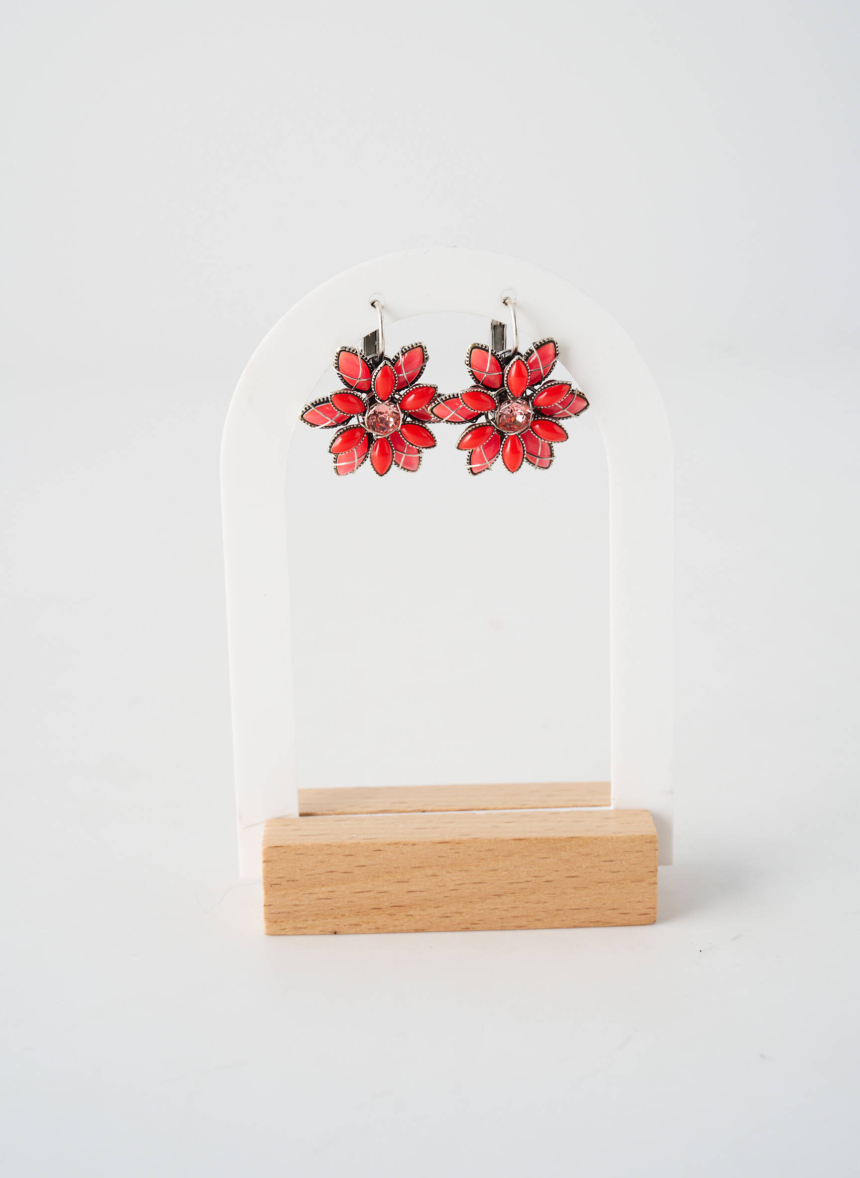 Ces boucles d’oreilles se glissent aussi bien avec une tenue casual, comme un jean et une blouse blanche, qu’avec une robe fluide pour une allure plus sophistiquée. Pour un effet harmonieux, on peut les associer à quelques bijoux fins en argent ou à un sac coloré rappelant la teinte rouge, afin de créer un rappel élégant sans en faire trop. Elles s’accordent parfaitement avec des coiffures relevées qui mettent en valeur leur forme, et apportent une note pétillante à des looks monochromes comme à des imprimés fleuris.