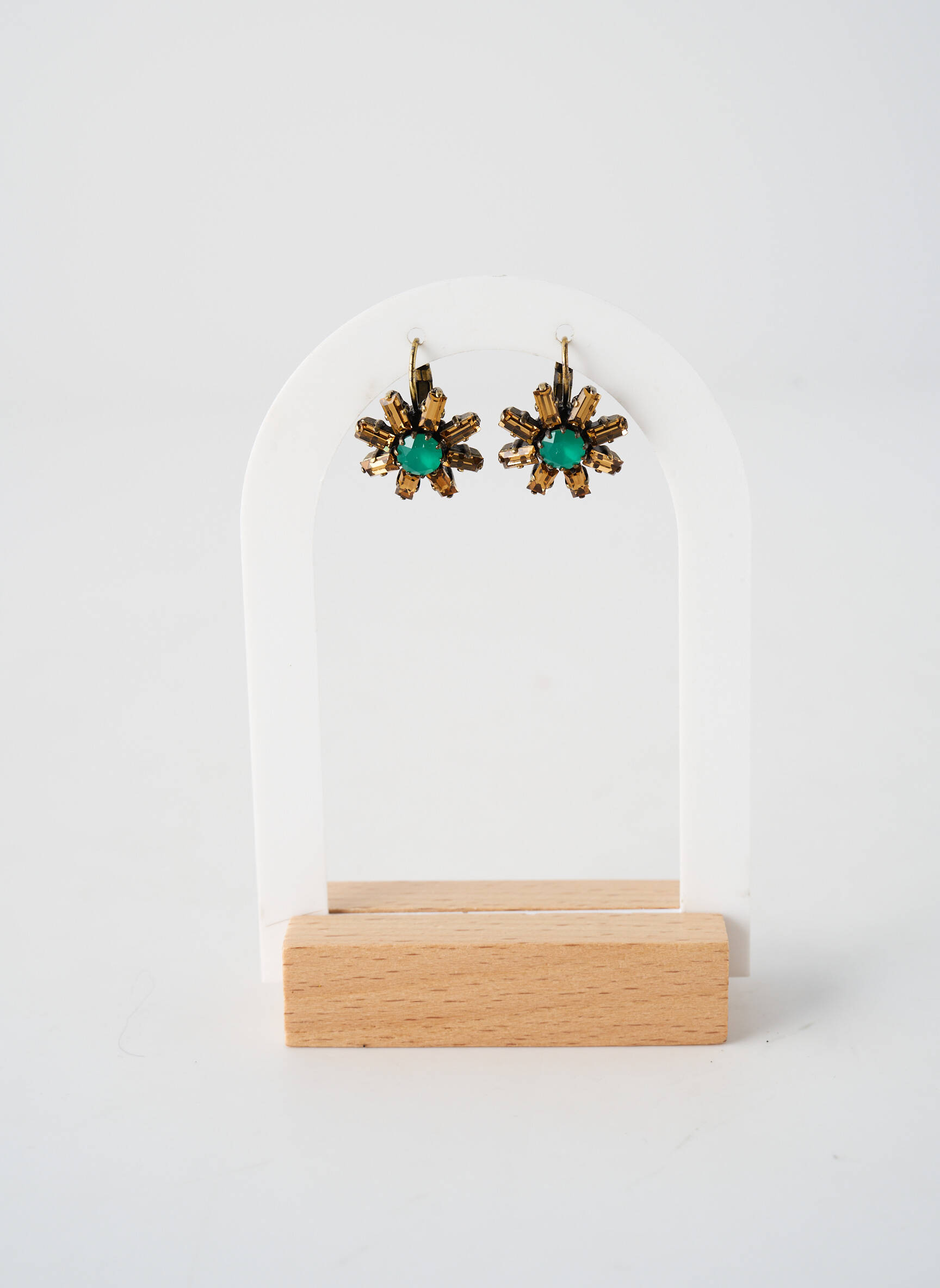 Ces boucles d’oreilles se portent aussi bien avec une tenue décontractée pour donner un petit twist bohème chic à un jean et un chemisier fluide, qu’avec une robe élégante lors d’une soirée ou d’un événement spécial. Pour un ensemble harmonieux, on peut les associer à un bracelet fin doré ou à une bague ornée de pierres aux tonalités proches, tout en misant sur une coiffure relevée afin de mettre en valeur leur éclat et leur forme originale. Un top uni ou une veste légère permet de souligner leur caractère, tandis que des accessoires en cuir ou en matières naturelles viendront renforcer l’esprit solaire de la pièce.
