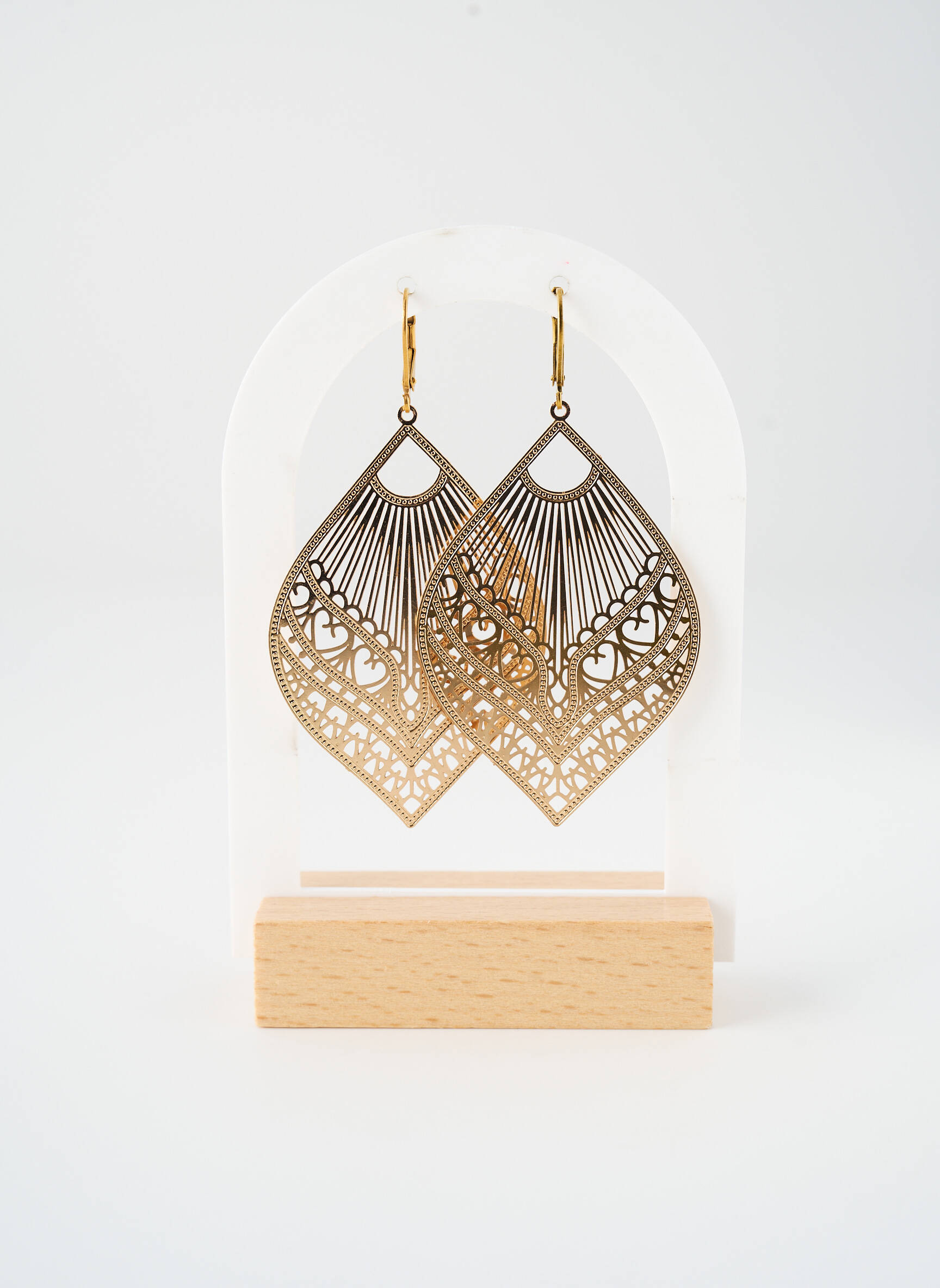 Profitez d’un vrai bon plan avec ces boucles d’oreilles SATINE pour femme, au design raffiné qui apportera une touche d’élégance à toutes vos tenues sans vous ruiner. Leur forme graphique ajourée et leur finition délicatement dorée offrent un style à la fois moderne et sophistiqué, parfait pour accessoiriser votre look au quotidien ou lors d’une soirée, le tout à prix tout doux.