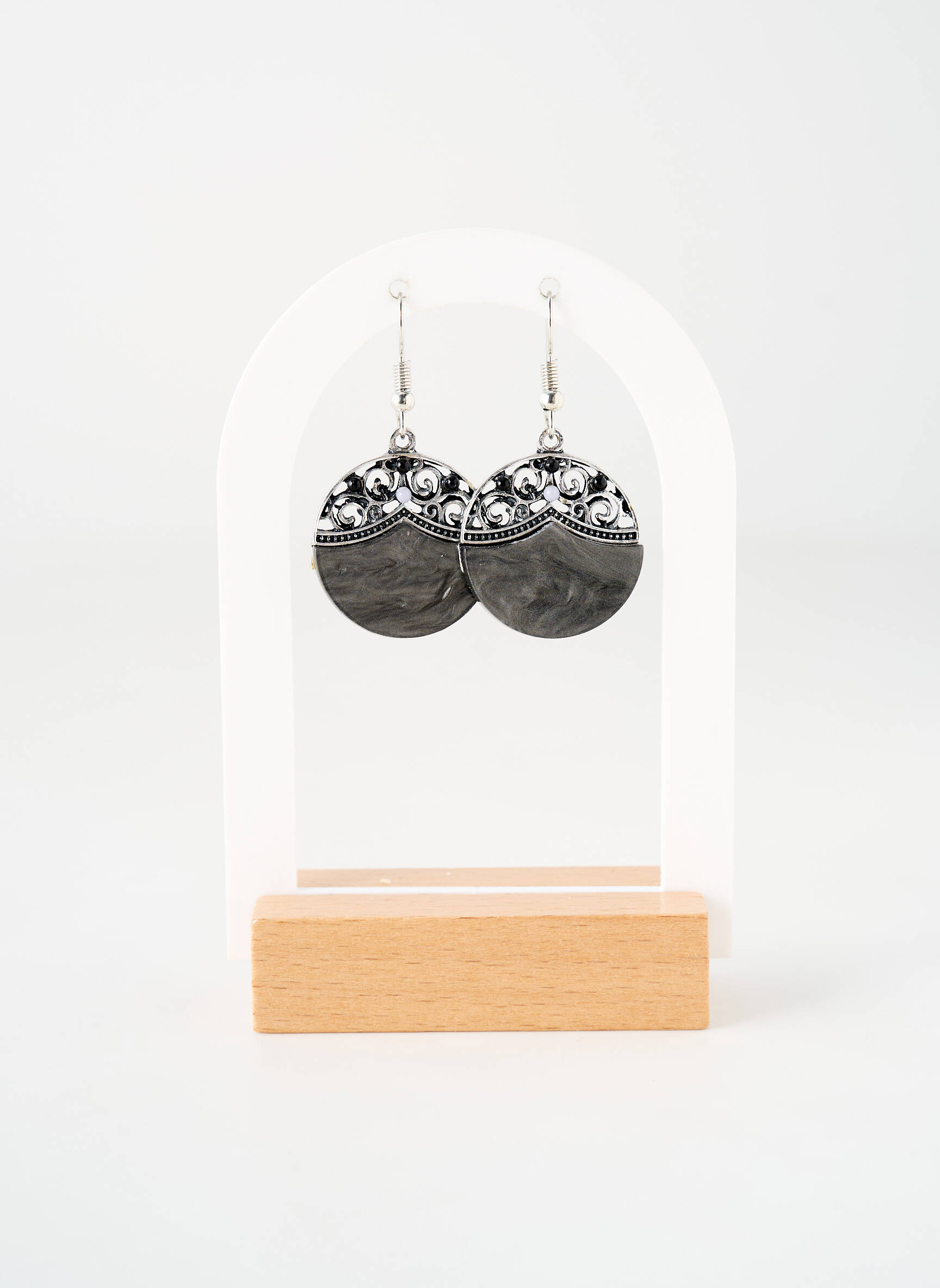 Craquez pour ces boucles d’oreilles TATA GISELE, une vraie trouvaille à petit prix pour apporter une touche d’originalité à votre look. Leur forme ronde élégante, associée à un jeu de couleurs entre le gris marbré et le métal argenté finement travaillé, en fait un accessoire qui attire l’œil tout en restant facile à porter au quotidien. Profitez de cette belle opportunité pour vous offrir un bijou raffiné sans vous ruiner !