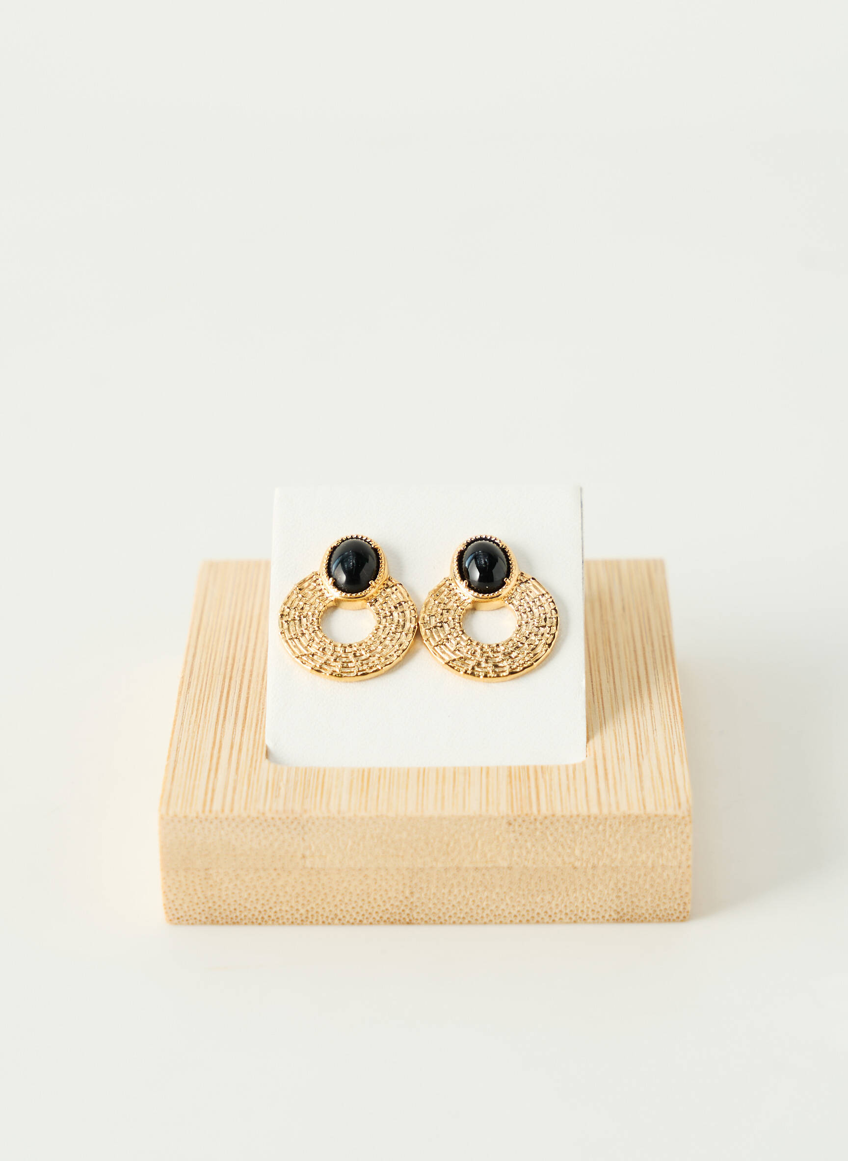 Craquez pour ces boucles d’oreilles de la marque TATA GISELE à prix tout doux, parfaites pour rehausser votre style sans vous ruiner. Avec leur design raffiné mêlant un cabochon noir élégant et une structure circulaire dorée finement texturée, elles apportent une touche chic et intemporelle à toutes vos tenues, tout en vous offrant un vrai bon plan mode.