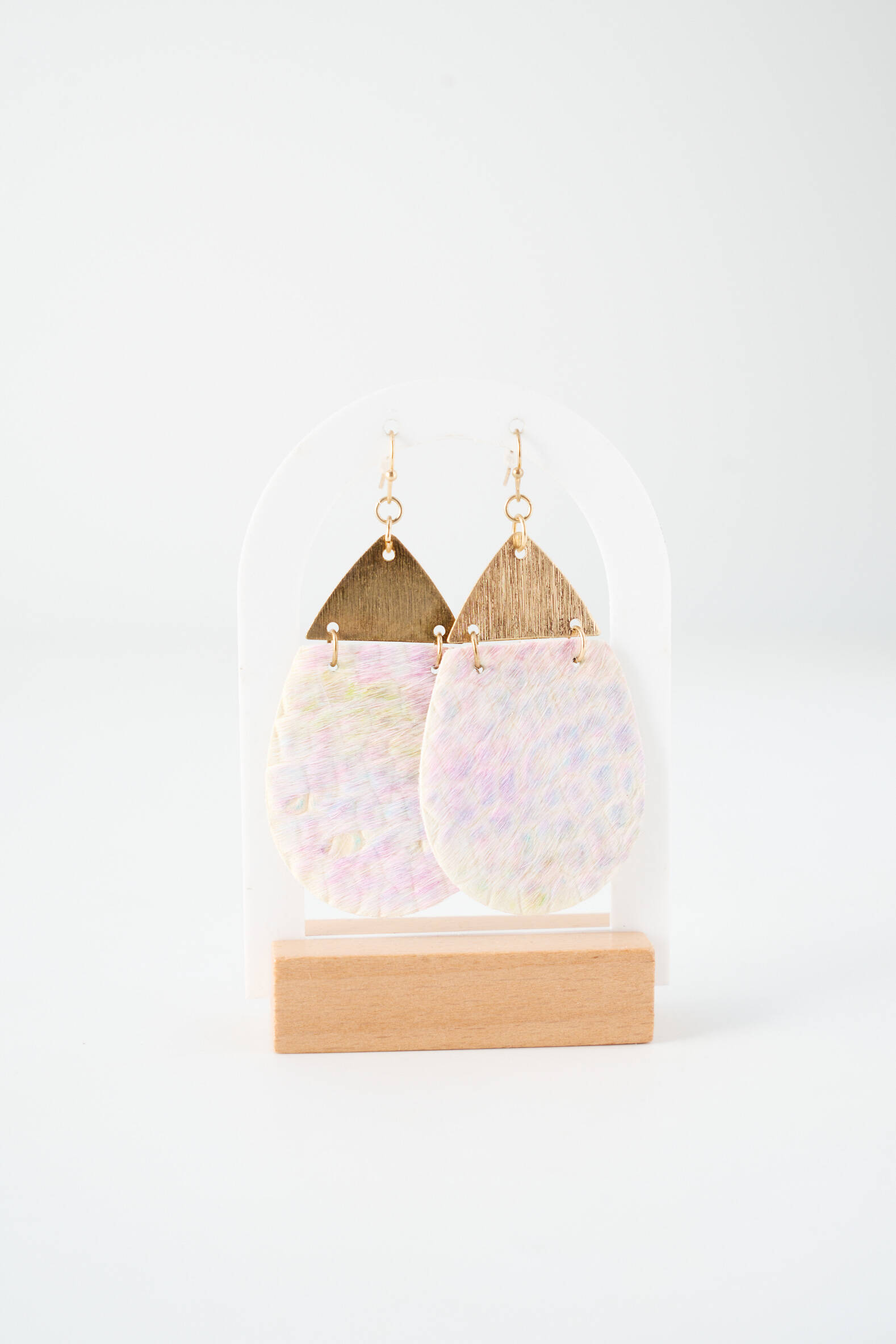 Ce modèle se porte facilement avec une blouse fluide ou une robe légère pour sublimer un look décontracté chic, ou encore avec un pull uni pour une pointe d’originalité en hiver. Pour une allure harmonieuse, on peut l’associer à des accessoires dorés fins comme un bracelet ou une bague discrète, ou oser une pochette pastel qui rappelle les reflets délicats de ces boucles d’oreilles, tout en gardant le reste de la tenue dans des tons sobres afin de bien les mettre en valeur.