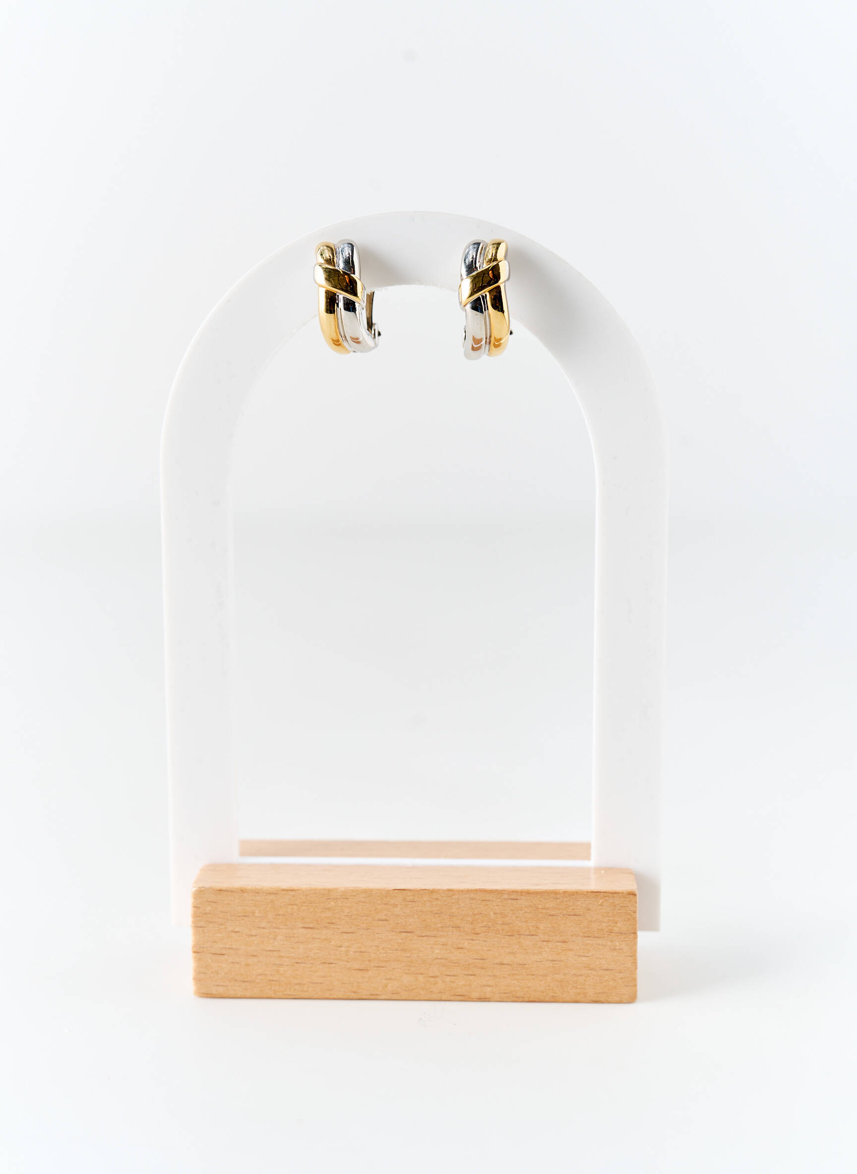 Ces boucles s’enfilent facilement et se marient à merveille avec une coiffure relevée pour mettre en valeur leur éclat, ou simplement sur cheveux lâchés pour une note lumineuse discrète. Leur style bicolore permet de les associer aussi bien à une montre argentée qu’à une bague dorée, tout en créant une harmonie élégante avec un petit sac à main ou une blouse sophistiquée pour un look accessible et raffiné au quotidien.
