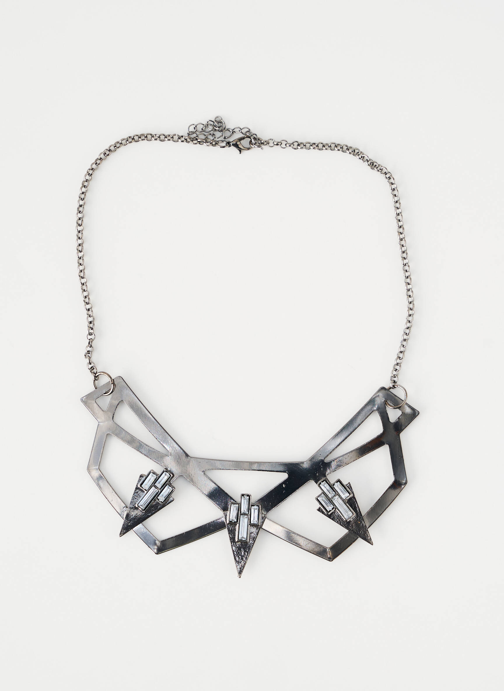 Voici l’occasion idéale de craquer pour un bijou tendance à prix mini : ce collier pour femme signé AB STUDIO séduit par son design graphique et audacieux, dont la structure argentée aux formes géométriques reflète parfaitement l’esprit contemporain, tout en venant sublimer vos tenues du quotidien comme vos looks du soir, sans vous ruiner.