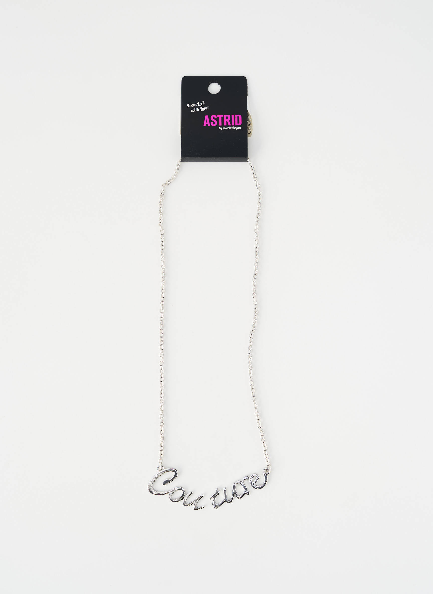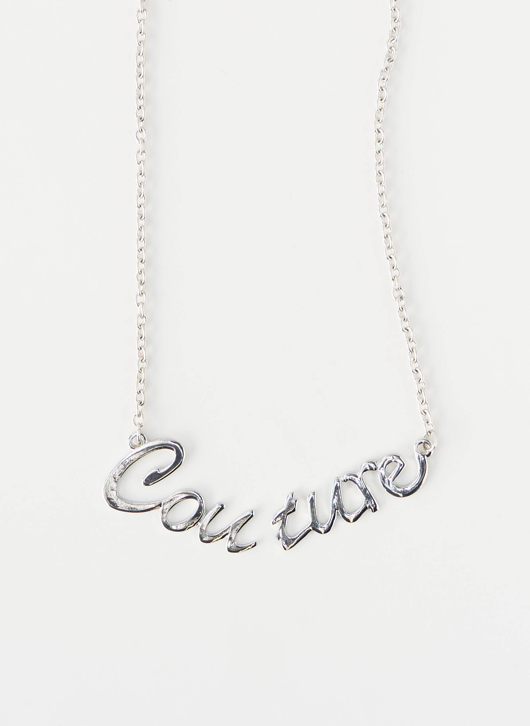 Craquez pour ce collier AB STUDIO pour femme qui affiche fièrement l’inscription “Couture” en lettres argentées, une touche tendance à prix mini qui rehaussera tous vos looks sans vous ruiner. Ce bijou délicat apporte une pointe d’audace chic à votre tenue, parfait pour celles qui aiment se démarquer tout en faisant de vraies économies.