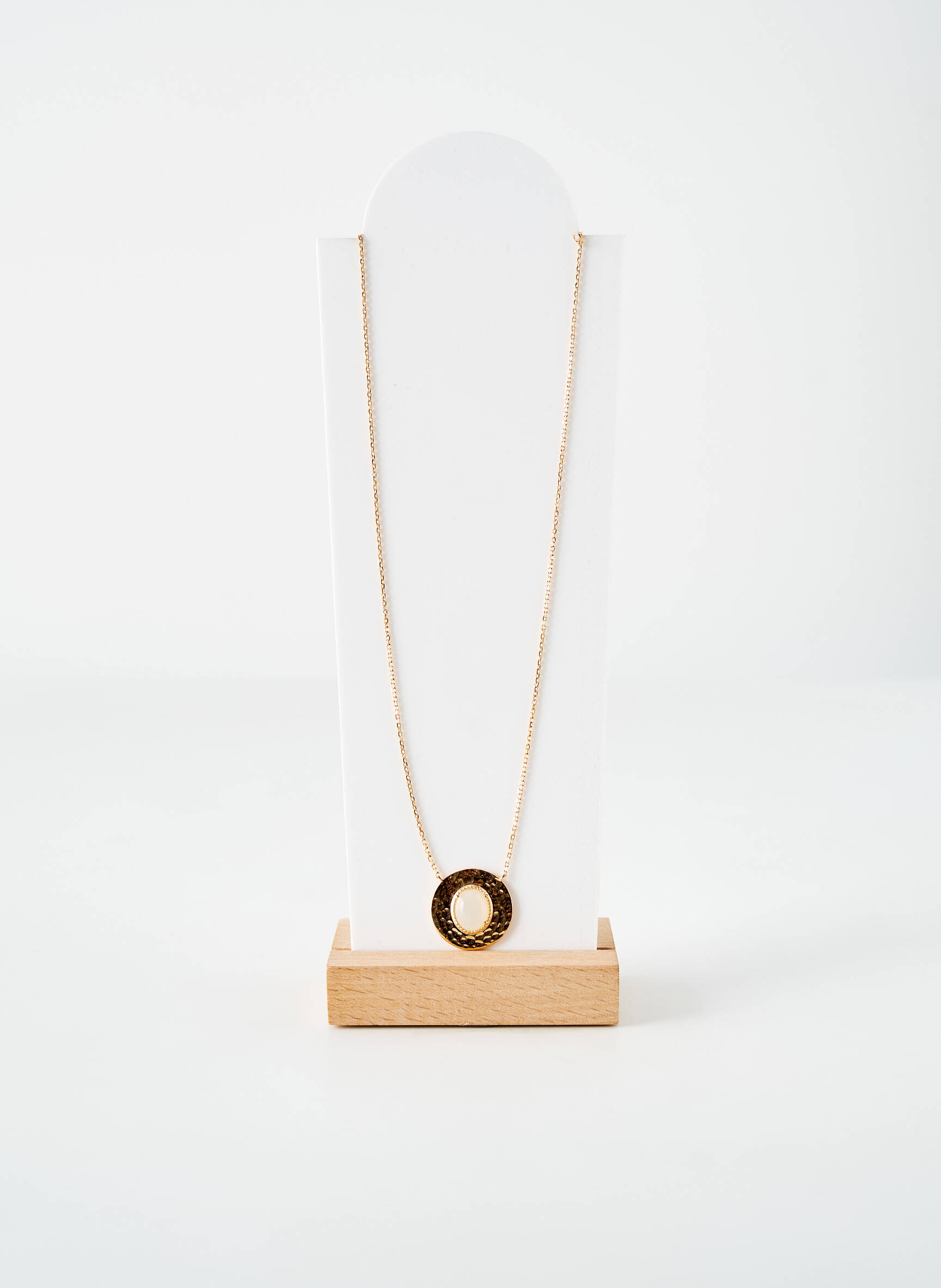 Craquez pour ce collier de la marque Coque de Nacre, une pièce élégante à petit prix qui apporte une touche raffinée à toutes vos tenues grâce à son pendentif rond délicatement travaillé et sa fine chaîne dorée, parfait pour se faire plaisir sans se ruiner.
