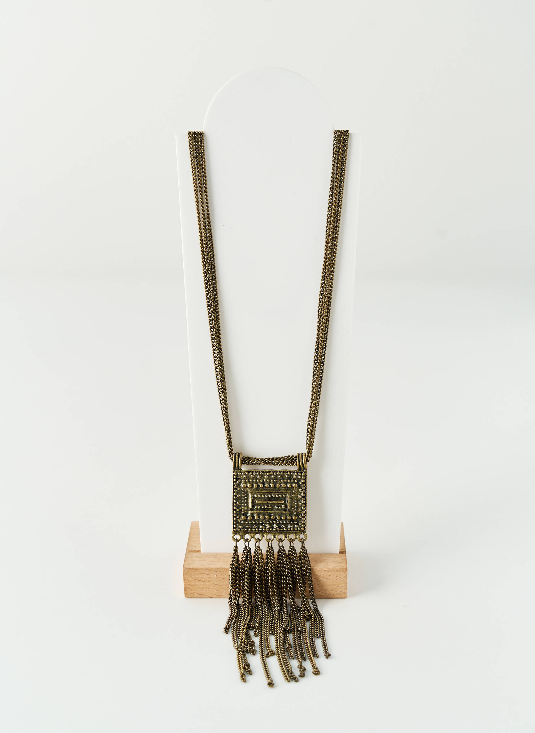 Saisissez une opportunité unique avec ce collier GET INFECTED pour femme, un accessoire tendance à petit prix qui mêle style ethnique et raffinement grâce à son pendentif rectangulaire orné de détails ciselés et de pampilles originales, idéal pour personnaliser vos tenues sans vous ruiner.