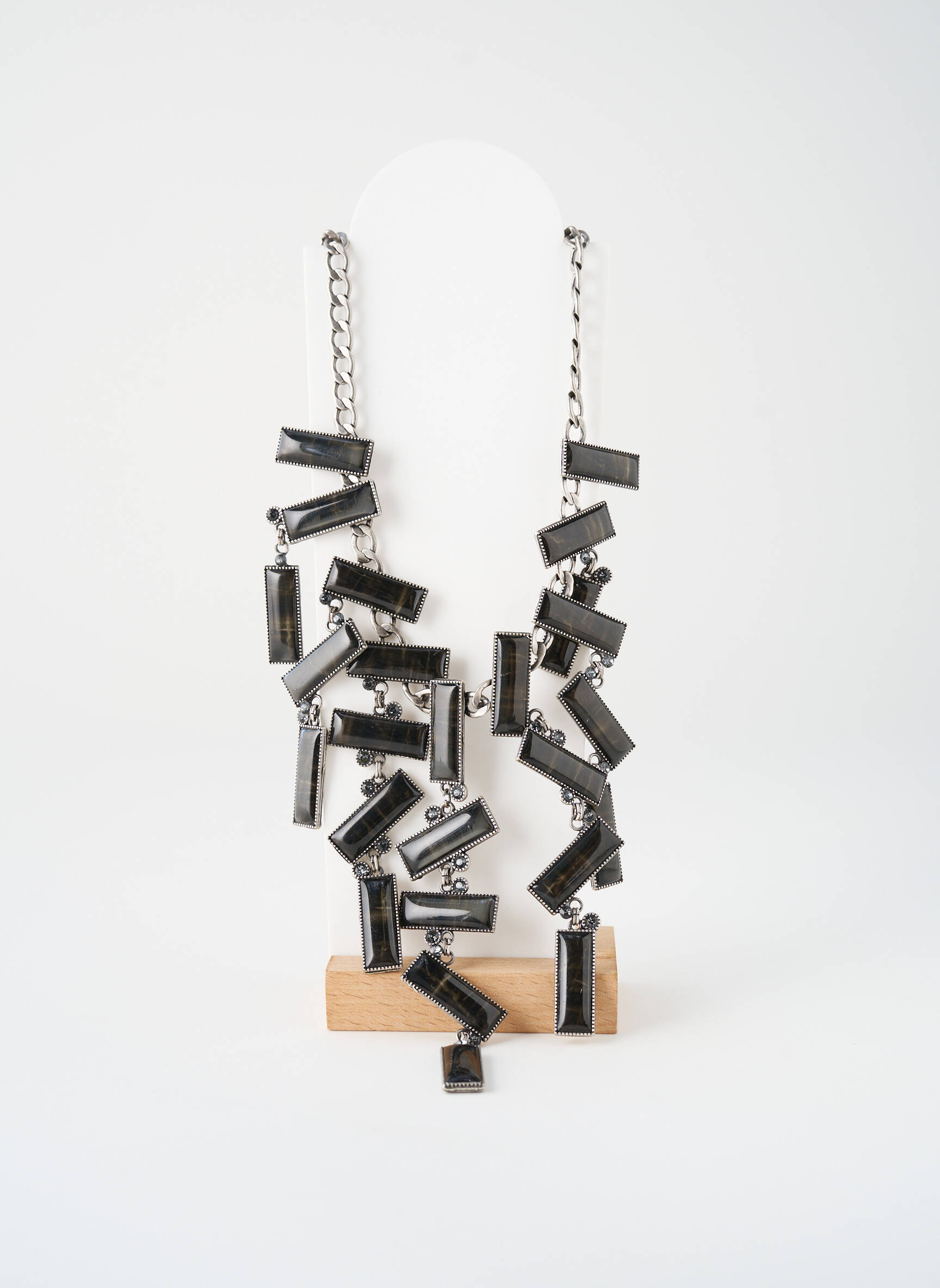 Ce collier se porte facilement sur un haut uni ou une robe simple pour mettre en valeur ses détails graphiques. Il s’associe particulièrement bien avec des boucles d’oreilles discrètes et un sac à main élégant pour un effet sophistiqué, mais vous pouvez aussi l’adopter avec une veste structurée pour une allure résolument contemporaine lors d’une sortie ou d’un rendez-vous.