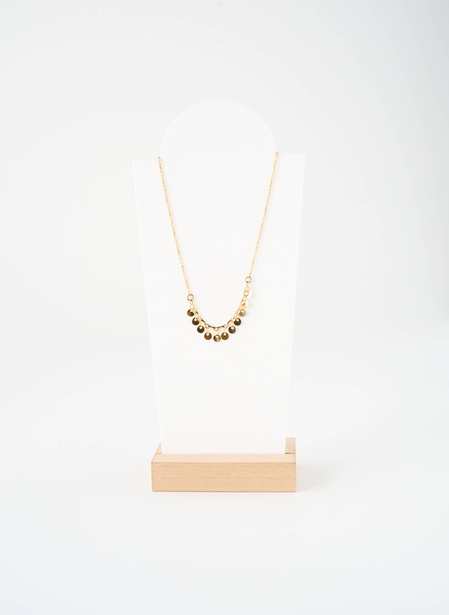 Ce collier se glisse facilement sur un joli haut décolleté ou un pull à col rond pour attirer la lumière et affiner la silhouette. Il s’accorde parfaitement avec des boucles d’oreilles discrètes dorées ou des bracelets fins pour un effet harmonieux et moderne, et peut aussi se superposer avec d’autres colliers de différentes longueurs pour créer un look personnalisé à prix mini.