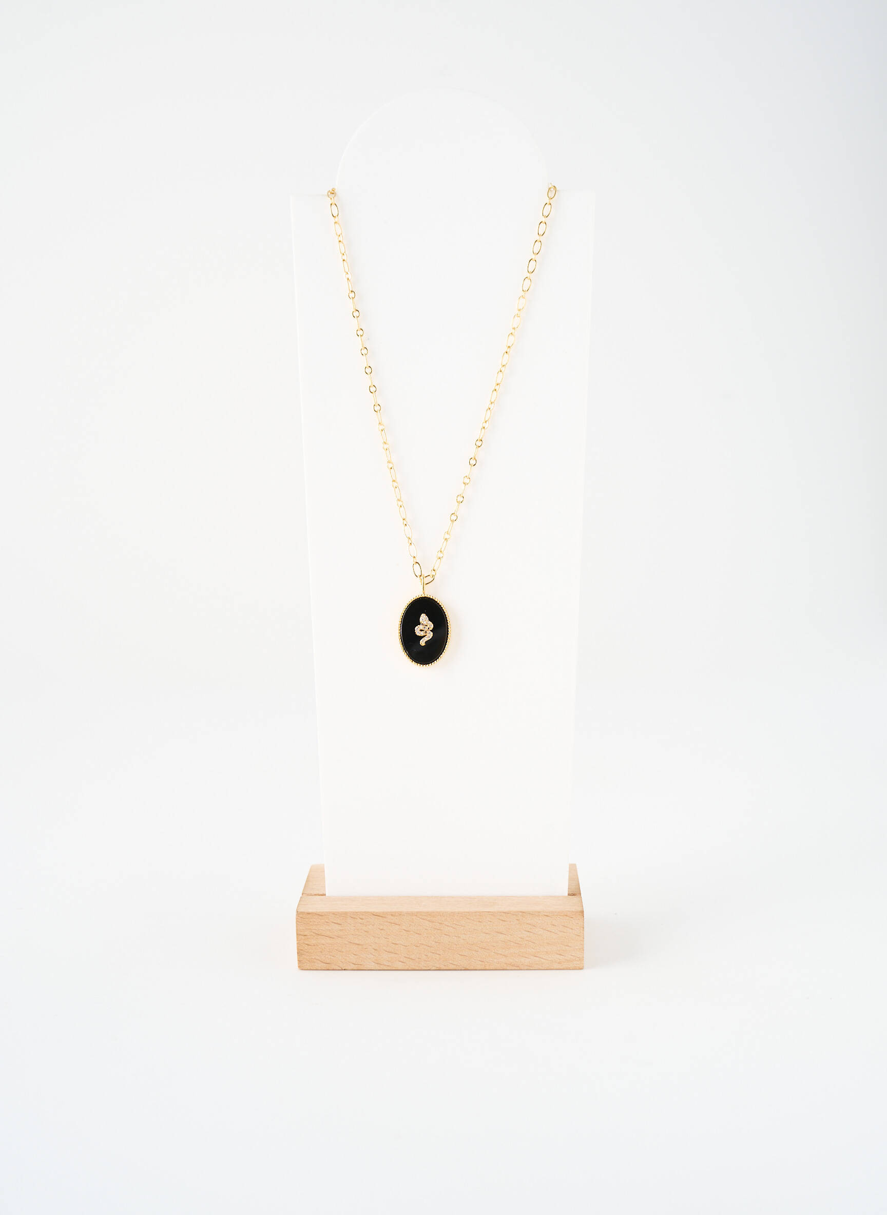 Offrez-vous un accessoire tendance à prix tout doux avec ce collier pour femme signé NILAI, qui marie délicatement une fine chaîne dorée à un pendentif ovale noir rehaussé d’un détail lumineux en son centre. Ce bijou vous permet de donner une touche élégante et sophistiquée à toutes vos tenues, tout en profitant d’une vraie bonne affaire sur une création de créateur.