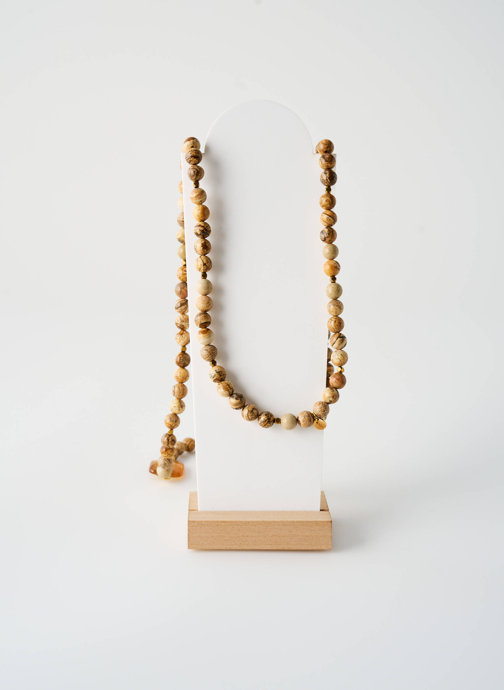 Ce collier se glisse à merveille sur un haut uni pour mettre en valeur ses nuances naturelles et créer un contraste délicat. Il peut aussi s’harmoniser avec des accessoires dorés pour renforcer son côté chaleureux ou se mixer avec d’autres colliers fins en superposition pour un look tendance. Porté avec une robe fluide ou un chemisier ouvert, il apporte la touche finale qui fait toute la différence, tout en restant facile à assortir avec un sac en cuir ou des sandales dans les tons neutres.