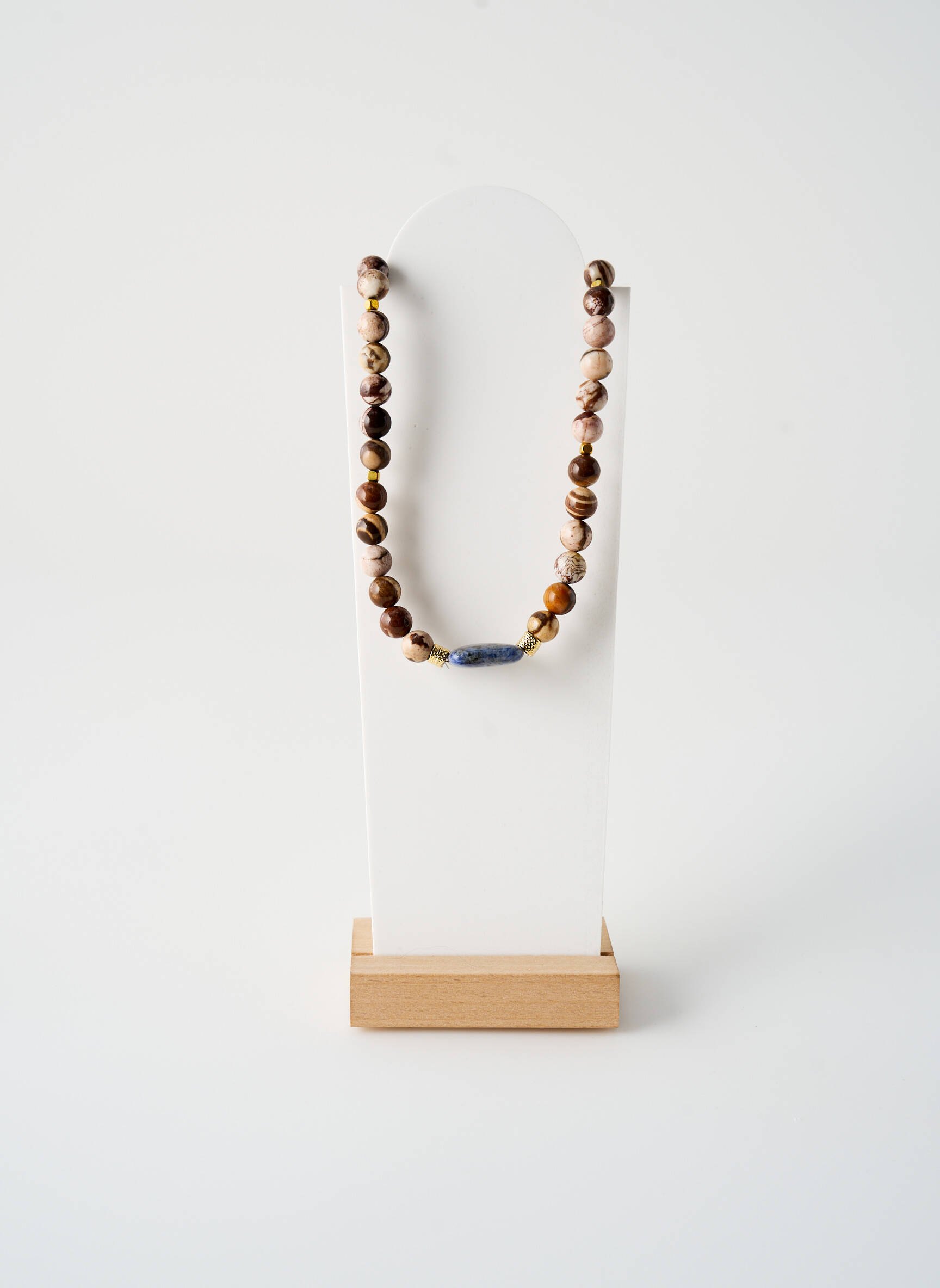 Craquez pour ce collier femme ROSA PALMA à prix mini qui combine élégance naturelle et petit budget, avec ses perles aux teintes chaudes subtilement nuancées et sa pierre centrale bleu profond qui attire tous les regards sans faire exploser votre porte-monnaie.