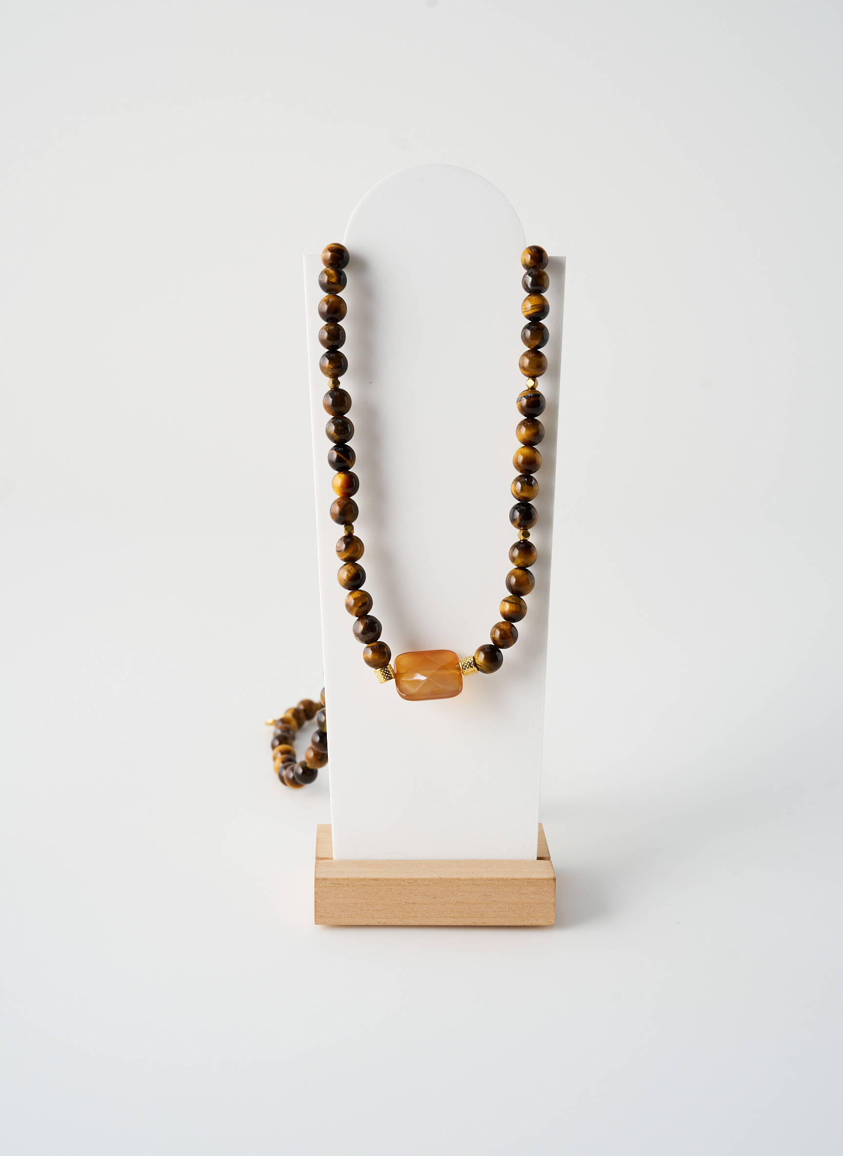 Ce collier se porte aussi bien sur un haut uni pour faire ressortir ses nuances chaudes que sur une robe fluide pour jouer avec les textures. Il se marie parfaitement avec des boucles d’oreilles discrètes et un bracelet coordonné pour une allure harmonieuse, mais il peut aussi être associé à un blazer moderne pour un look tendance et féminin. Ajoutez un sac en cuir naturel ou une pochette chic pour compléter votre style en toute simplicité.