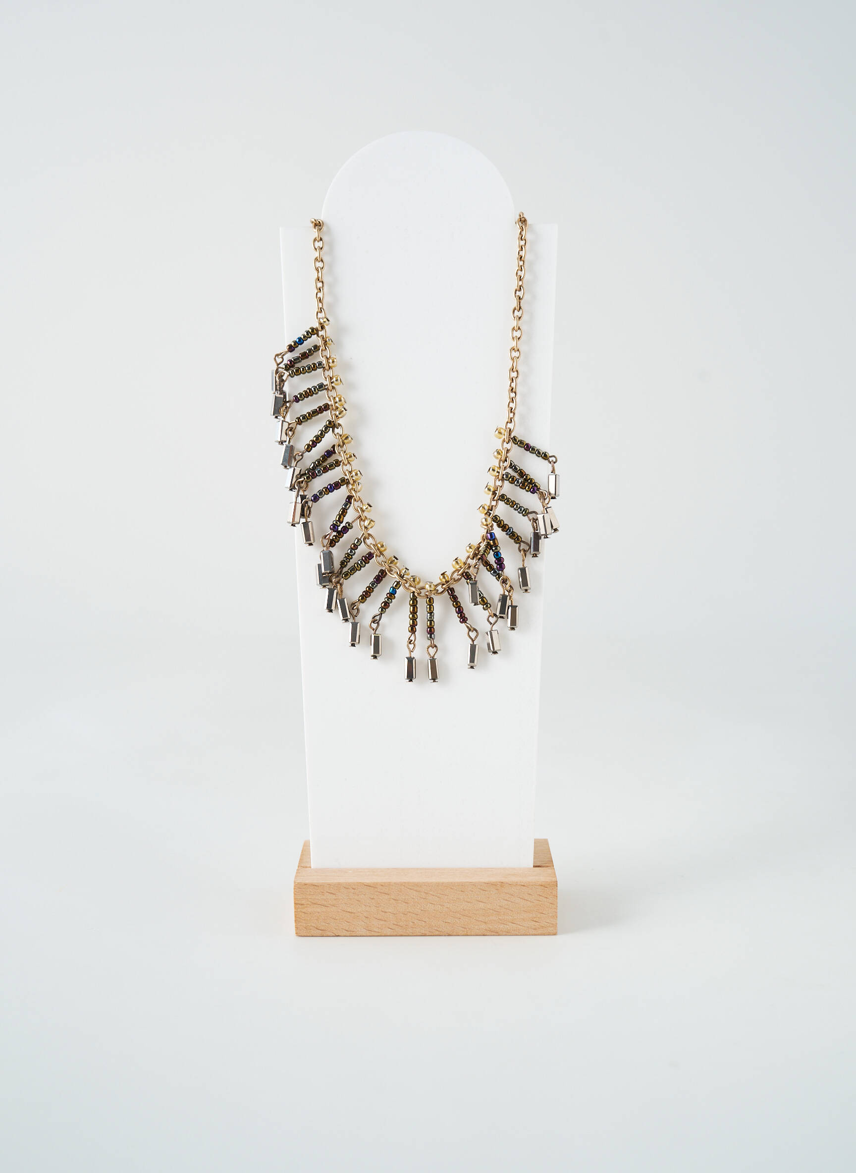 Ce collier s’accorde parfaitement avec un chemisier légèrement ouvert, une petite robe noire ou un t-shirt uni pour faire ressortir ses détails. Pour un effet encore plus chic, misez sur de petits bracelets fins dorés ou des boucles d’oreilles discrètes, et laissez-le être la pièce forte de votre look, que ce soit pour une sortie entre amis ou une journée au bureau.