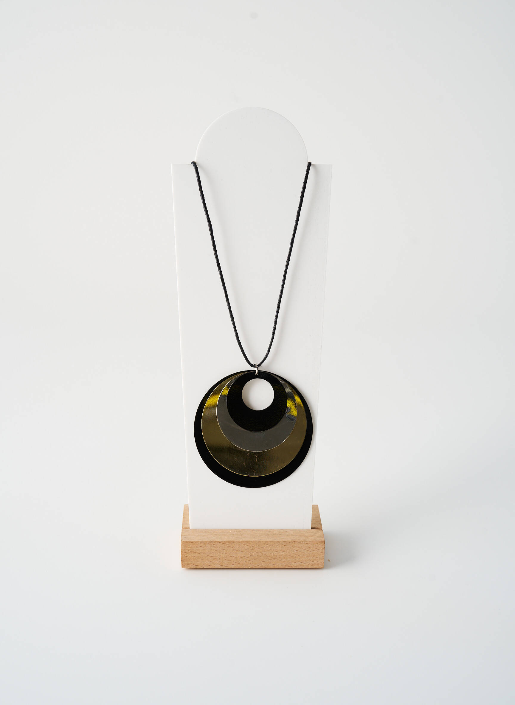 Ce collier se porte facilement sur un pull uni ou un chemisier à col ouvert pour mettre en valeur son pendentif imposant. Il s’associe à merveille avec des boucles d’oreilles discrètes et un sac à main sobre pour équilibrer les volumes, et peut compléter une tenue casual chic tout comme un look plus sophistiqué. Pour une allure plus audacieuse, il peut aussi accompagner une veste de blazer et un pantalon noir, en jouant sur le contraste entre les matières et les couleurs.