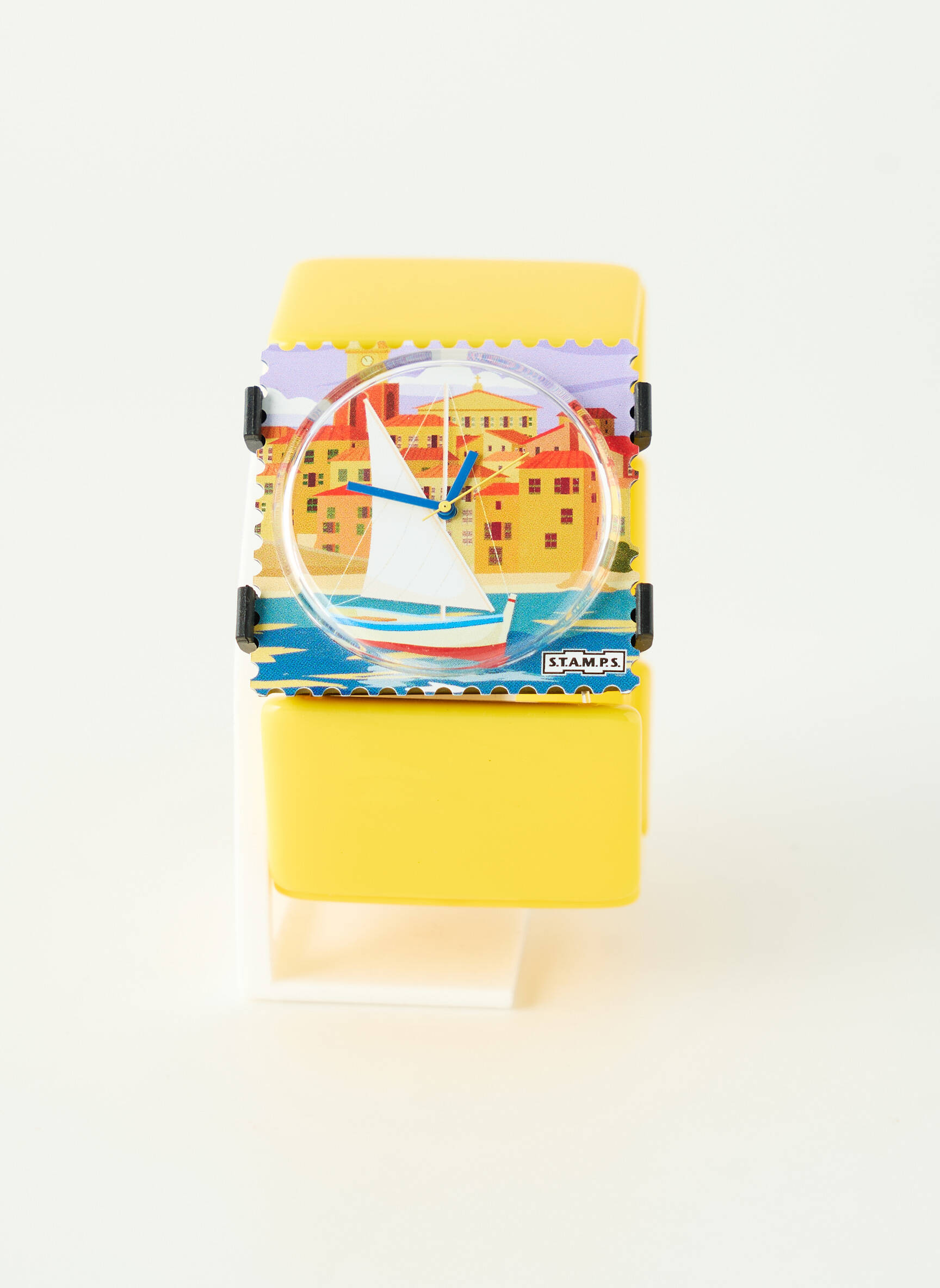 Craquez pour cette montre STAMPS pour femme et apportez une touche de couleur et d’originalité à votre poignet sans vous ruiner ; son cadran façon timbre postal, joliment illustré d’un voilier devant un village en bord de mer, se marie parfaitement à son bracelet jaune vif pour une allure joyeuse et moderne. Profitez de cette montre tendance à prix mini pour accessoiriser vos tenues avec style tout en maîtrisant votre budget.