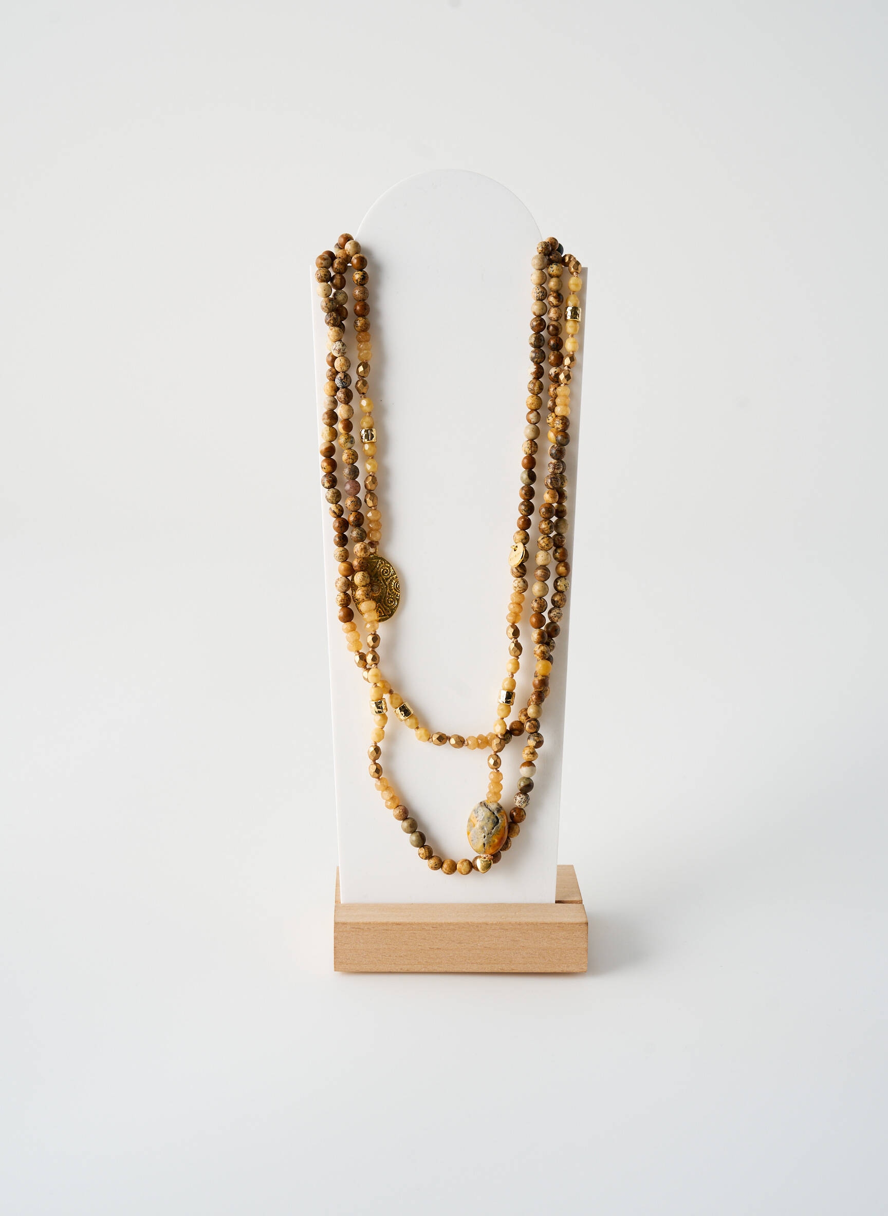 Ce sautoir se glisse facilement sur un pull uni ou un chemisier fluide pour mettre en valeur le décolleté avec modernité, tout en soulignant subtilement la silhouette. Pour un effet tendance, il s’accorde parfaitement avec des boucles d’oreilles sobres et une accumulation de bracelets fins, et il apporte une touche lumineuse aussi bien à un look casual avec un jean qu’à une robe plus habillée pour une soirée.