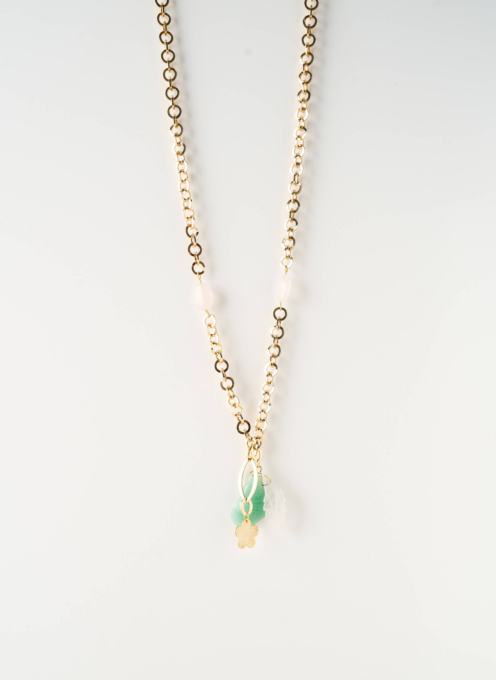 Craquez pour ce sautoir pour femme signé SATINE, une pièce élégante qui apporte une touche raffinée à vos tenues à prix mini. Ce modèle se distingue par sa chaîne dorée délicatement travaillée et ses pendentifs aux teintes douces, alliant perles vertes et pendentif fleur pour un look lumineux et féminin. Ce bijou tendance est une opportunité à saisir pour sublimer votre style sans vous ruiner.