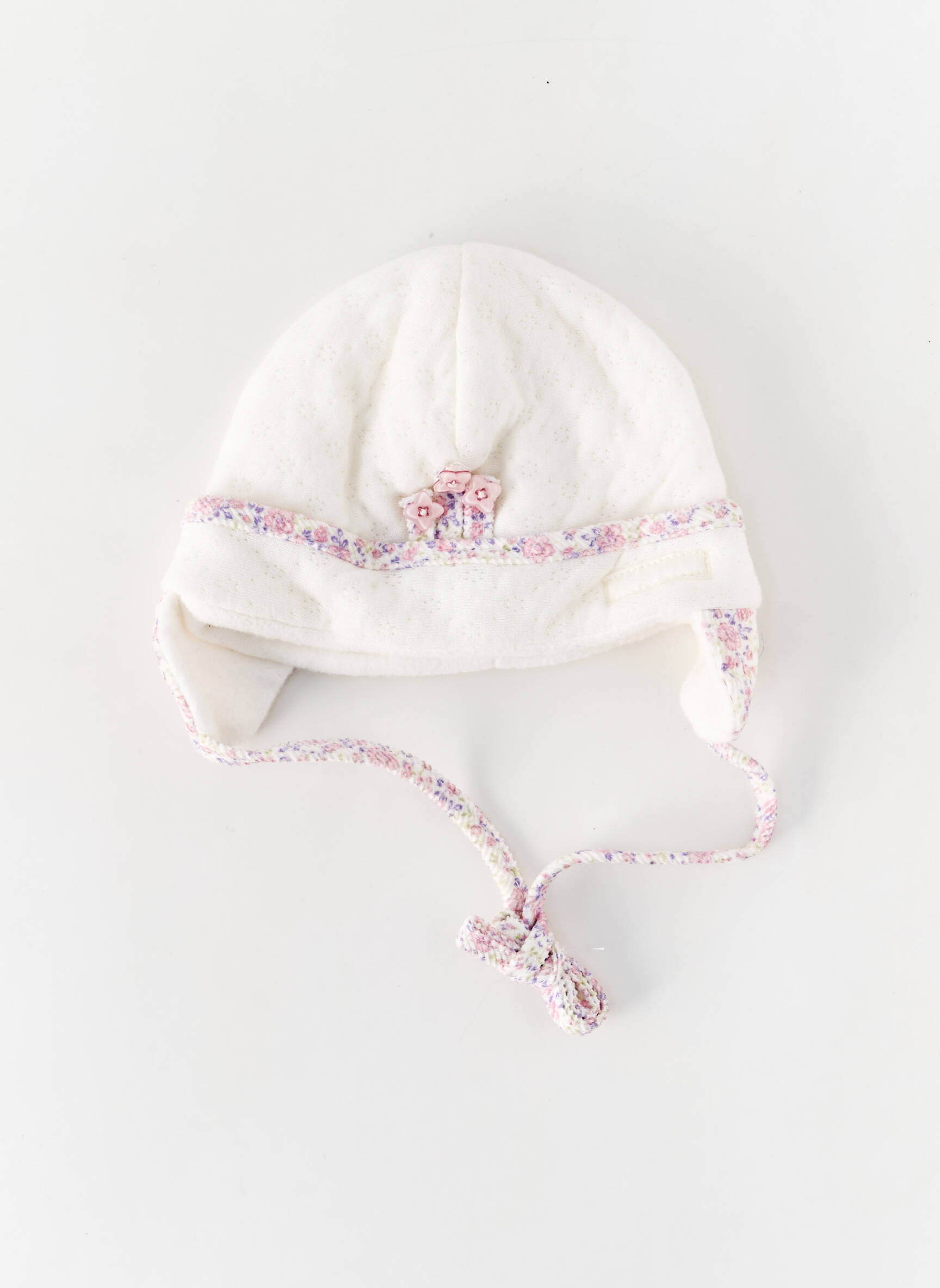 Faites plaisir à petit prix avec ce bonnet DOLLI VON DÖLL pour fille, qui allie douceur et confort tout en affichant un style délicat grâce à sa couleur crème rehaussée par de jolis détails fleuris au niveau des liens et de la petite broderie centrale, parfait pour garder la tête de votre enfant bien au chaud sans vous ruiner.