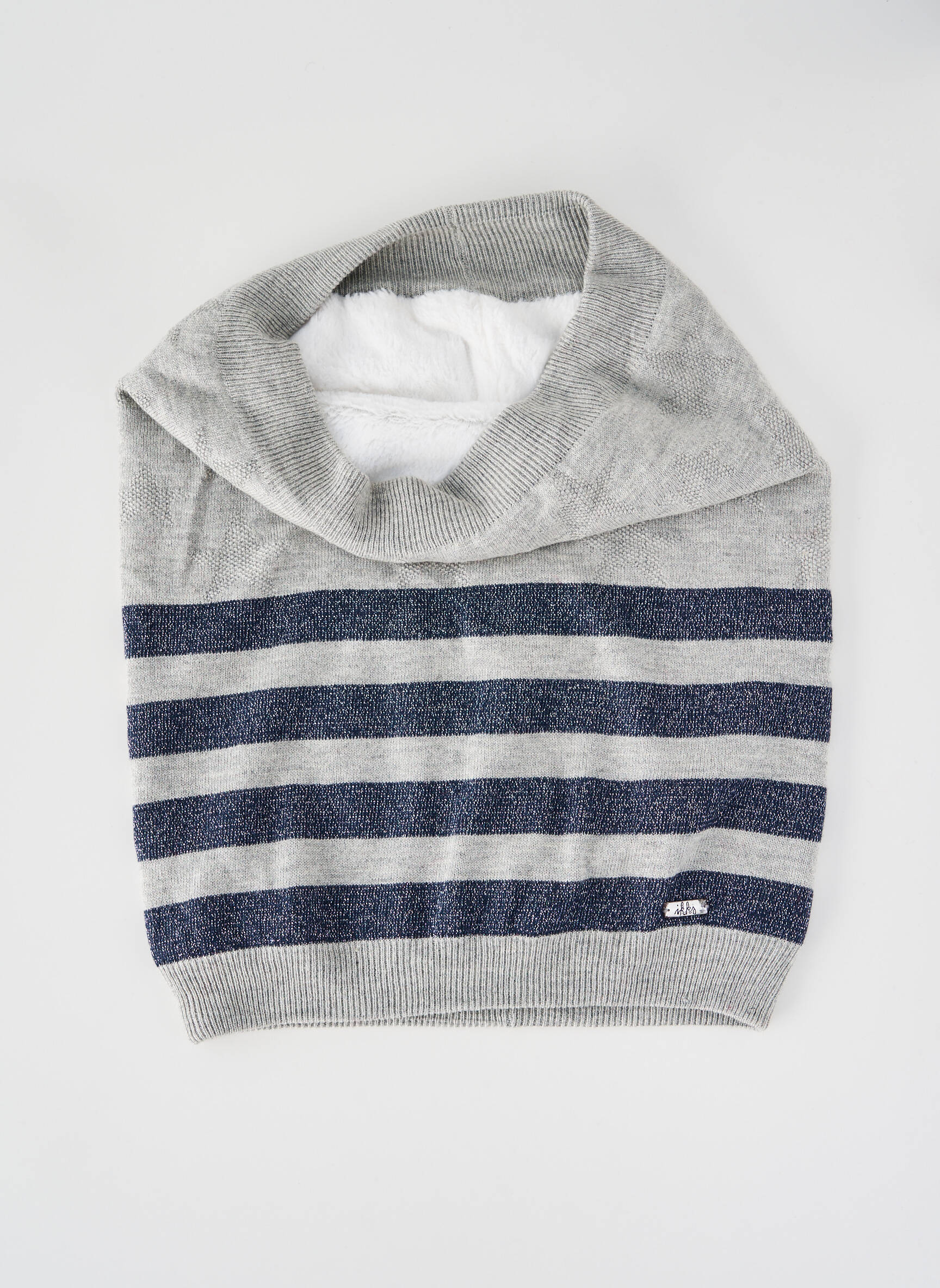 Profitez d'un accessoire cosy et tendance à prix mini avec ce col / tour de cou IKKS pour fille, parfait pour affronter les journées fraîches sans se ruiner. Son doux tricot gris rehaussé de larges rayures bleu marine apporte une touche moderne et stylée tout en assurant confort et chaleur, le tout à petit prix pour faire de belles économies sur une pièce incontournable de la saison.