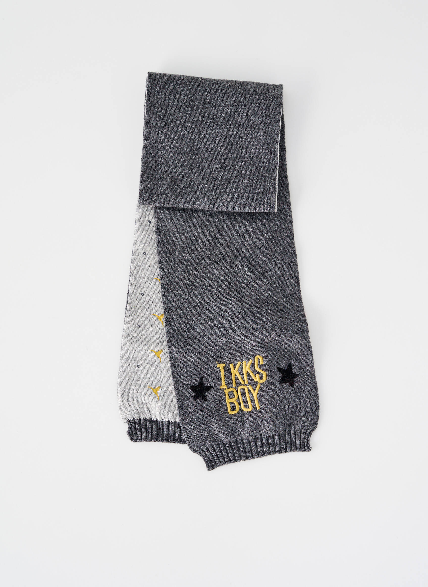 Profitez d’un vrai bon plan avec cette écharpe IKKS pour garçon, idéale pour apporter une touche stylée et chaleureuse sans se ruiner. Avec son motif bicolore gris chiné et ses détails étoilés ainsi que l’inscription IKKS BOY en jaune, elle offre un look tendance qui plaira à coup sûr tout en protégeant efficacement du froid à petit prix.