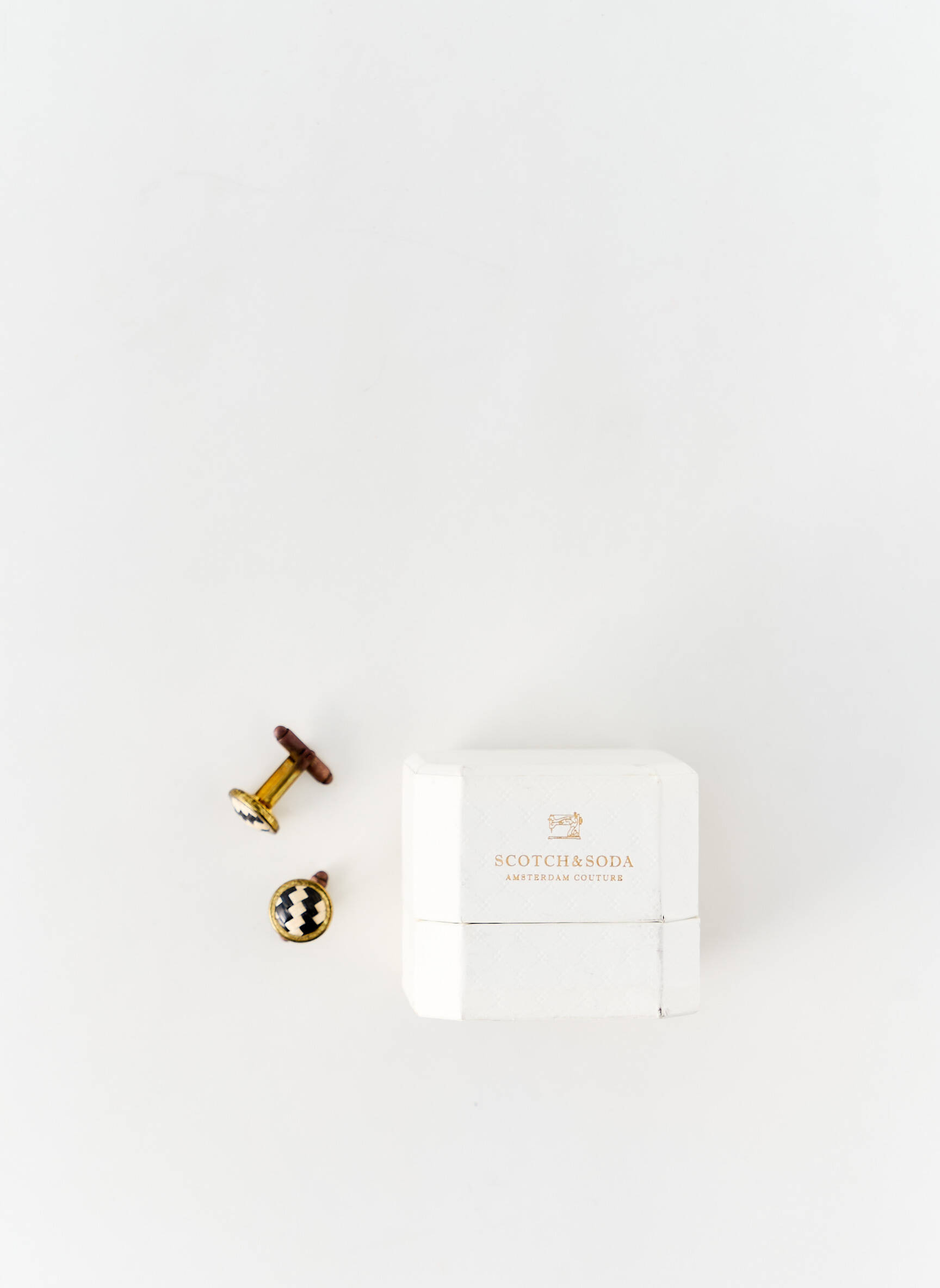 Optez pour une touche d’élégance à prix mini avec ces boutons de manchette pour homme signés SCOTCH & SODA, présentés dans un écrin raffiné qui souligne leur finition dorée et leur motif graphique noir et blanc, un vrai bon plan pour accessoiriser vos chemises sans vous ruiner tout en affichant un style unique et sophistiqué.