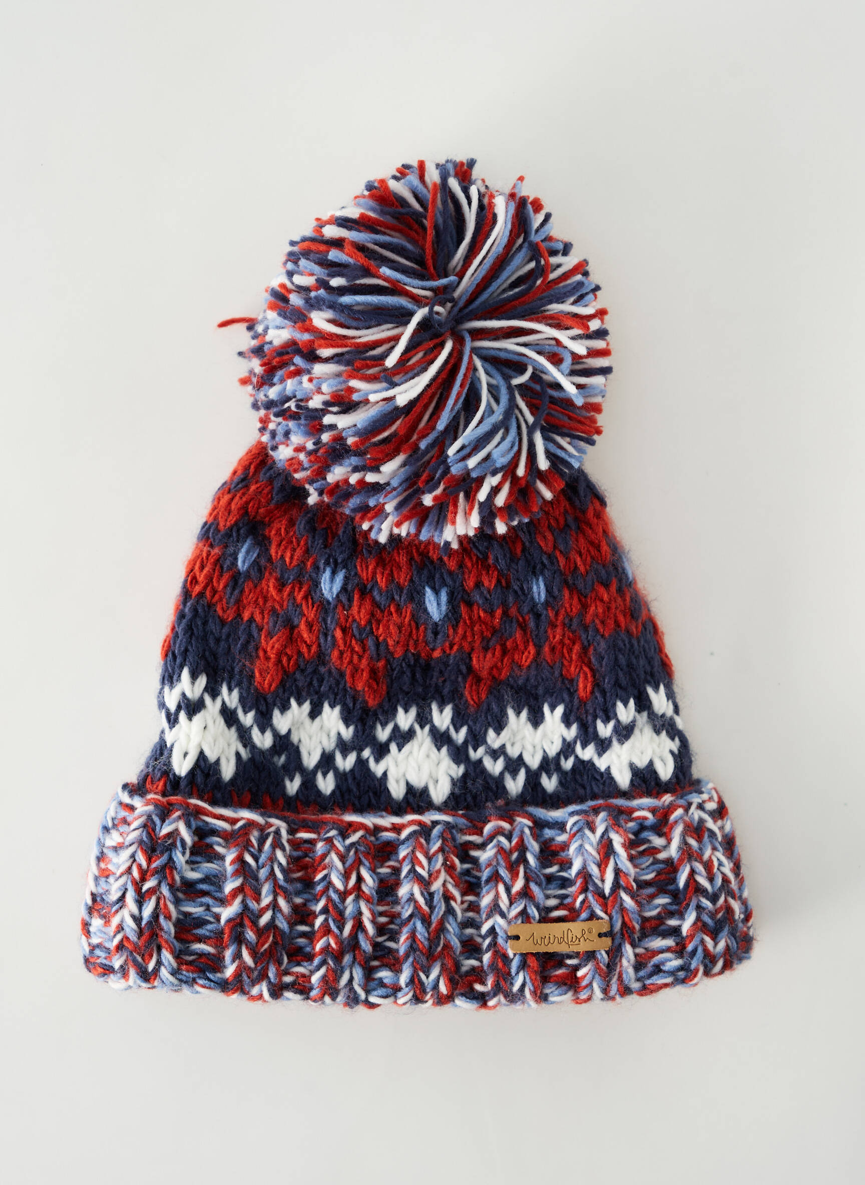 Voici une occasion à saisir pour ajouter une touche de style à petit prix à votre garde-robe hivernale avec ce bonnet pour homme signé WEIRD FISH, à l’allure originale et colorée. Ce bonnet séduit par son tricot épais dans des teintes bleu marine, rouge et blanc, et son pompon oversize pour une pointe de fun. Son revers large accentue le confort ainsi que la finition multicolore, parfaite pour apporter chaleur et caractère à toutes vos sorties, sans vous ruiner.