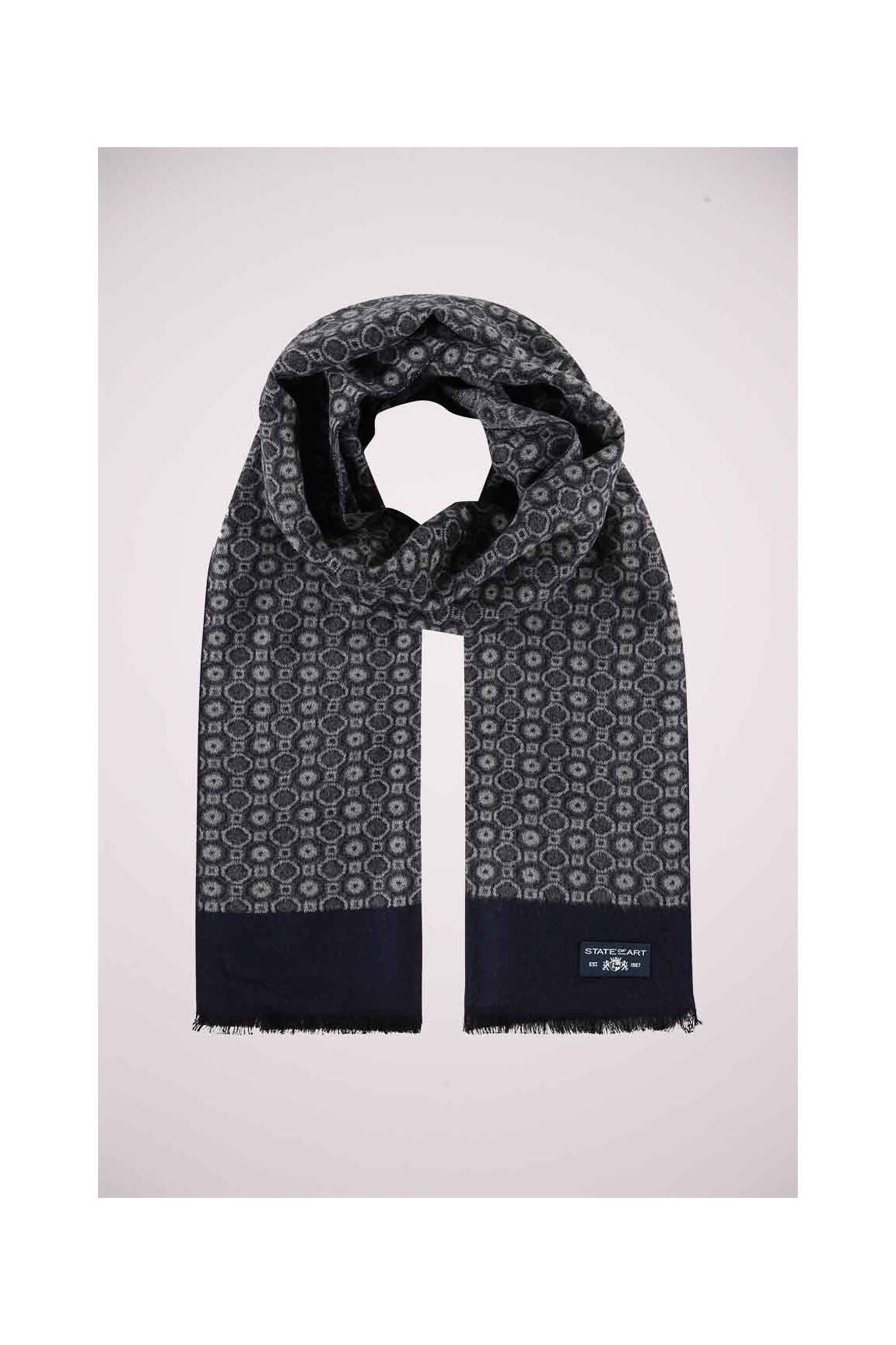 Profitez d’un vrai bon plan avec cette écharpe STATE OF ART pour homme, parfaite pour donner du style à vos tenues sans vous ruiner. Son motif géométrique élégant dans les tons bleu foncé apporte une touche de sophistication, tandis que sa finition soignée et le délicat liseré uni aux extrémités soulignent son raffinement. Idéale pour accessoiriser un manteau ou une veste, elle combine parfaitement élégance et économie, un indispensable à petit prix pour affronter la saison avec allure.