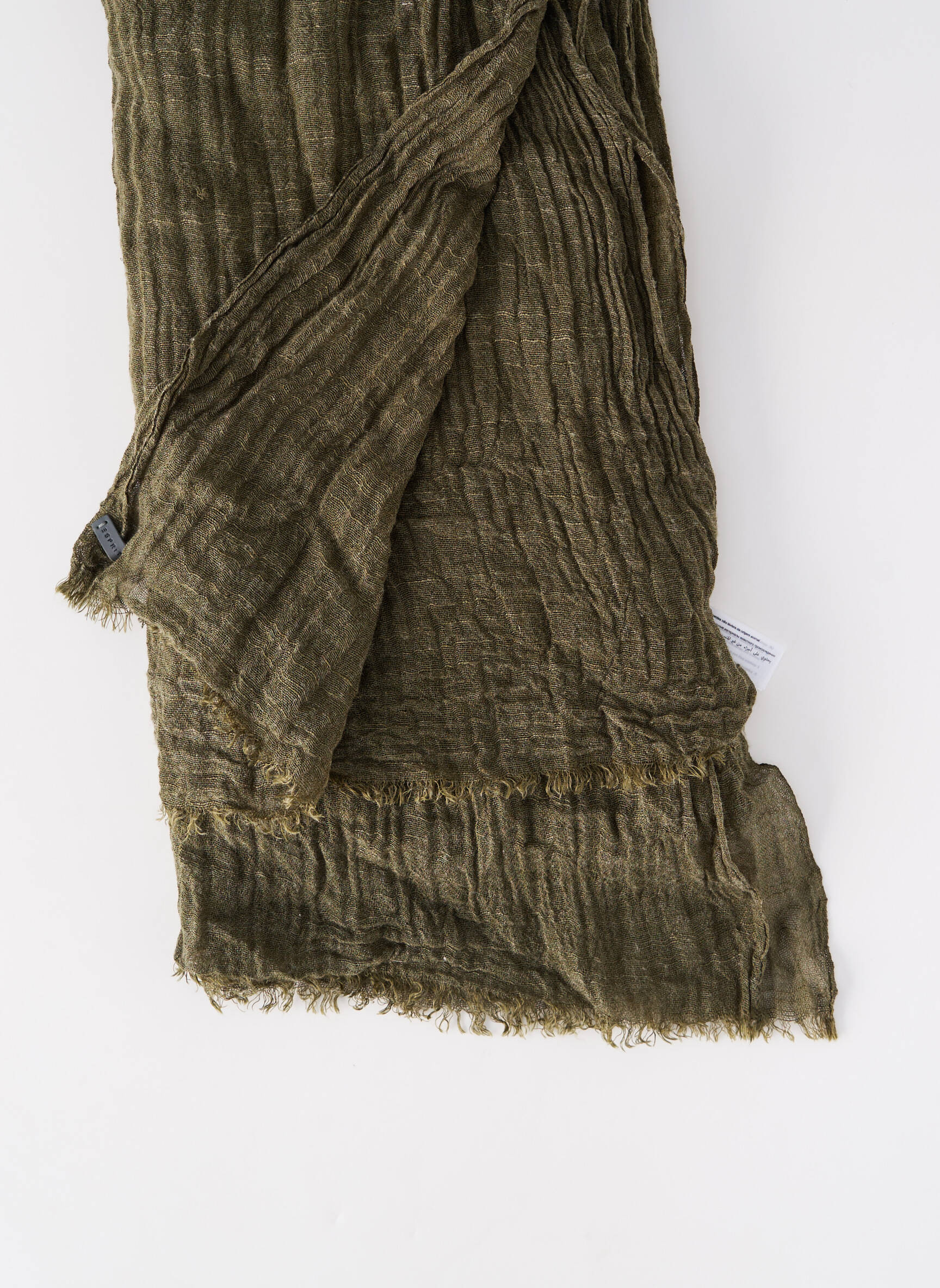 Profitez d'un accessoire Esprit tendance à prix accessible avec ce foulard pour homme qui apporte une touche casual et moderne à votre tenue. Son tissu à l'effet froissé, sa couleur kaki versatile et ses bords délicatement effilés offrent à la fois style et décontraction, idéal pour toutes les saisons sans vous ruiner.