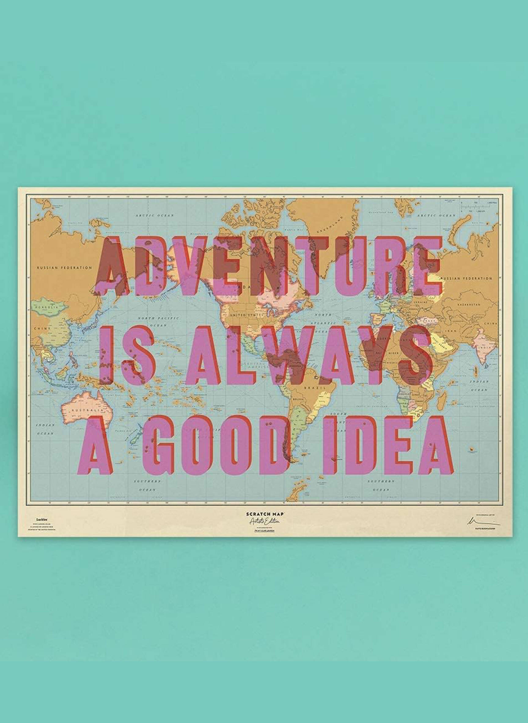 Scratch Map Artist's edition en collaboration avec Print club london. Luckies " Adventure is always a good idea" 59,4 cm x 84,1 cm