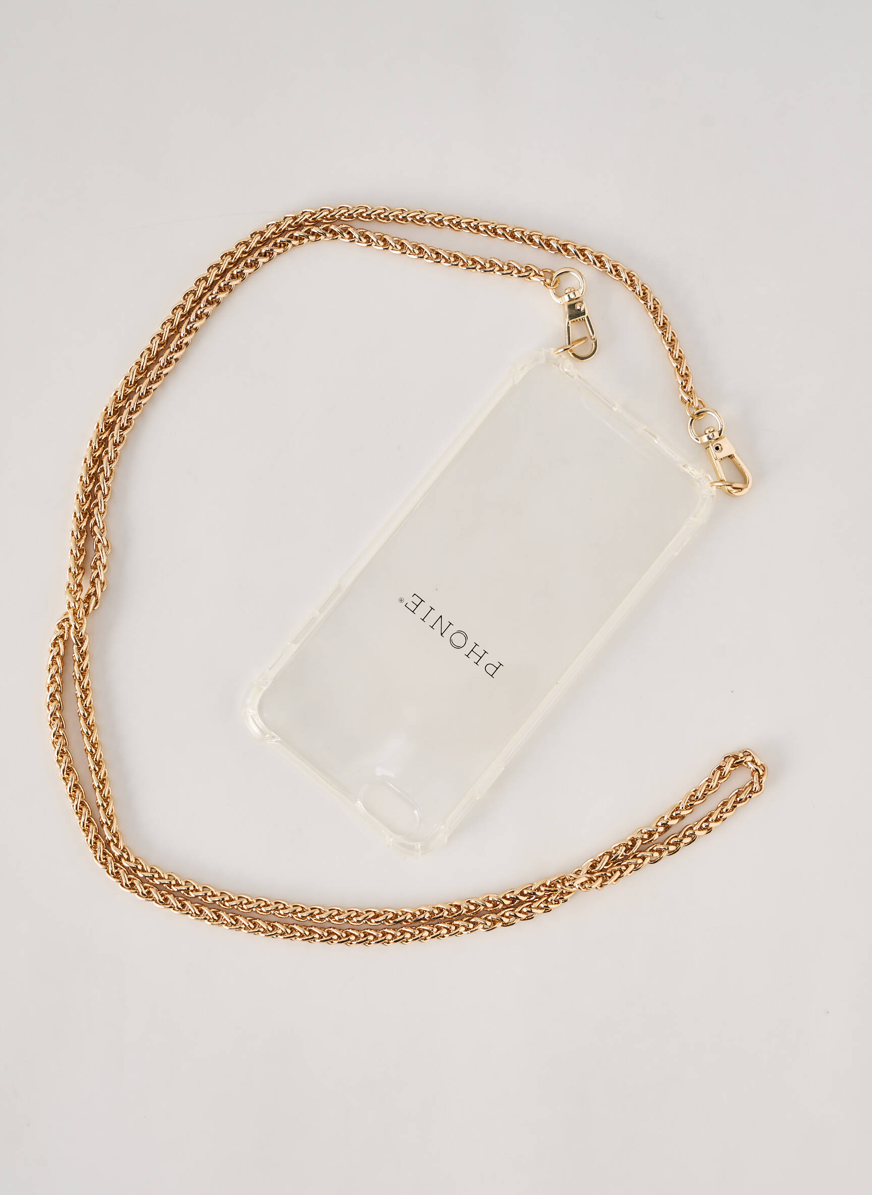 Profitez d'une solution pratique et stylée à petit prix avec cet accessoire PHONIE unisexe, une coque transparente munie d'une élégante chaîne dorée qui vous permet de garder votre téléphone toujours à portée de main tout en ajoutant une touche tendance à votre quotidien ; l’idéal pour profiter d’un bon plan sans compromis sur la praticité.
