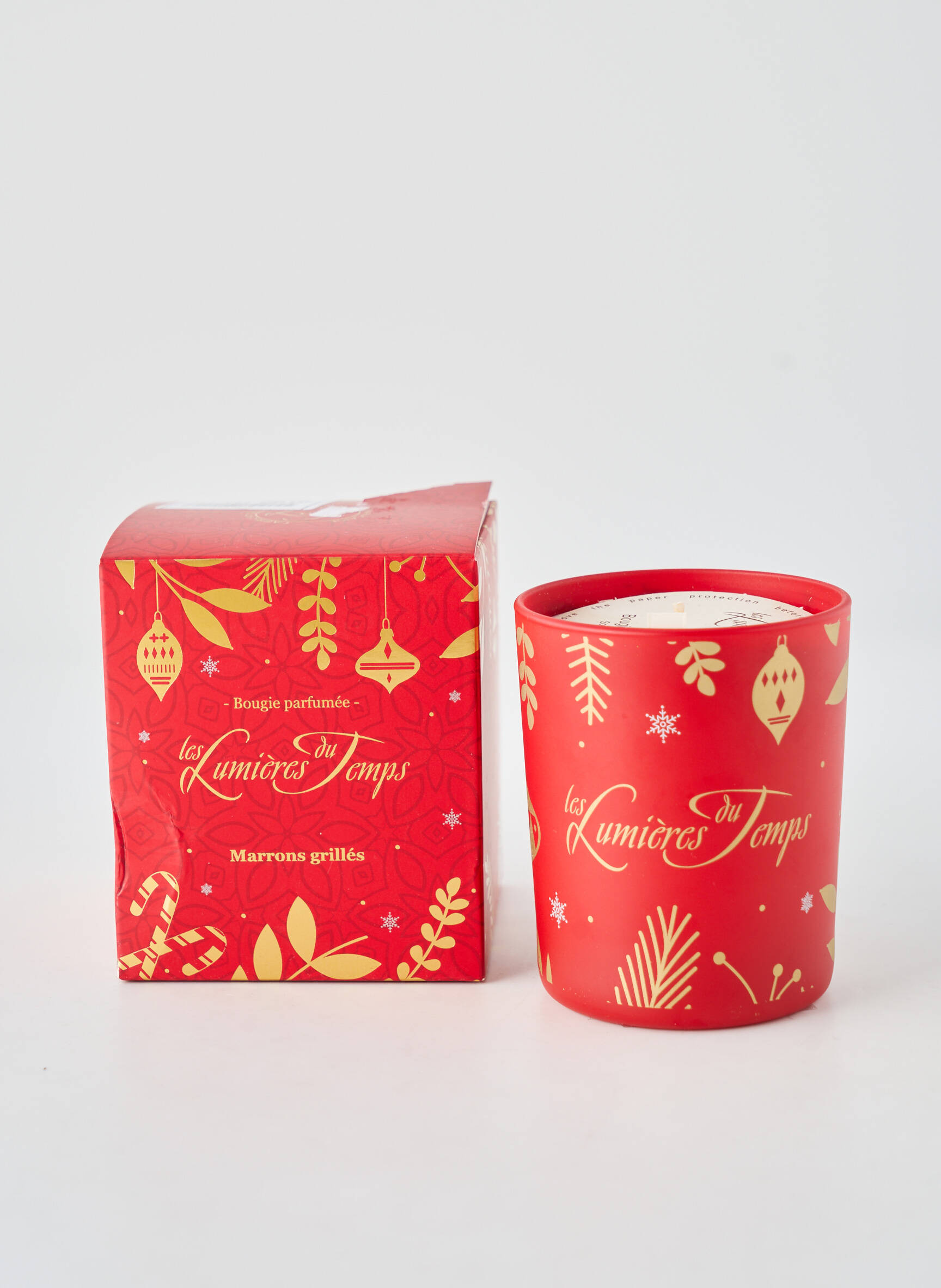 Craquez pour cette bougie parfumée signée Les Lumières du Temps, idéale pour créer une ambiance chaleureuse chez vous sans vous ruiner. Ce modèle unisexe arbore un joli écrin rouge décoré de motifs festifs qui en font une belle idée déco ou cadeau pas cher. Profitez d’un parfum délicat de marrons grillés qui parfume délicatement votre intérieur tout en profitant d’un bon plan irrésistible.