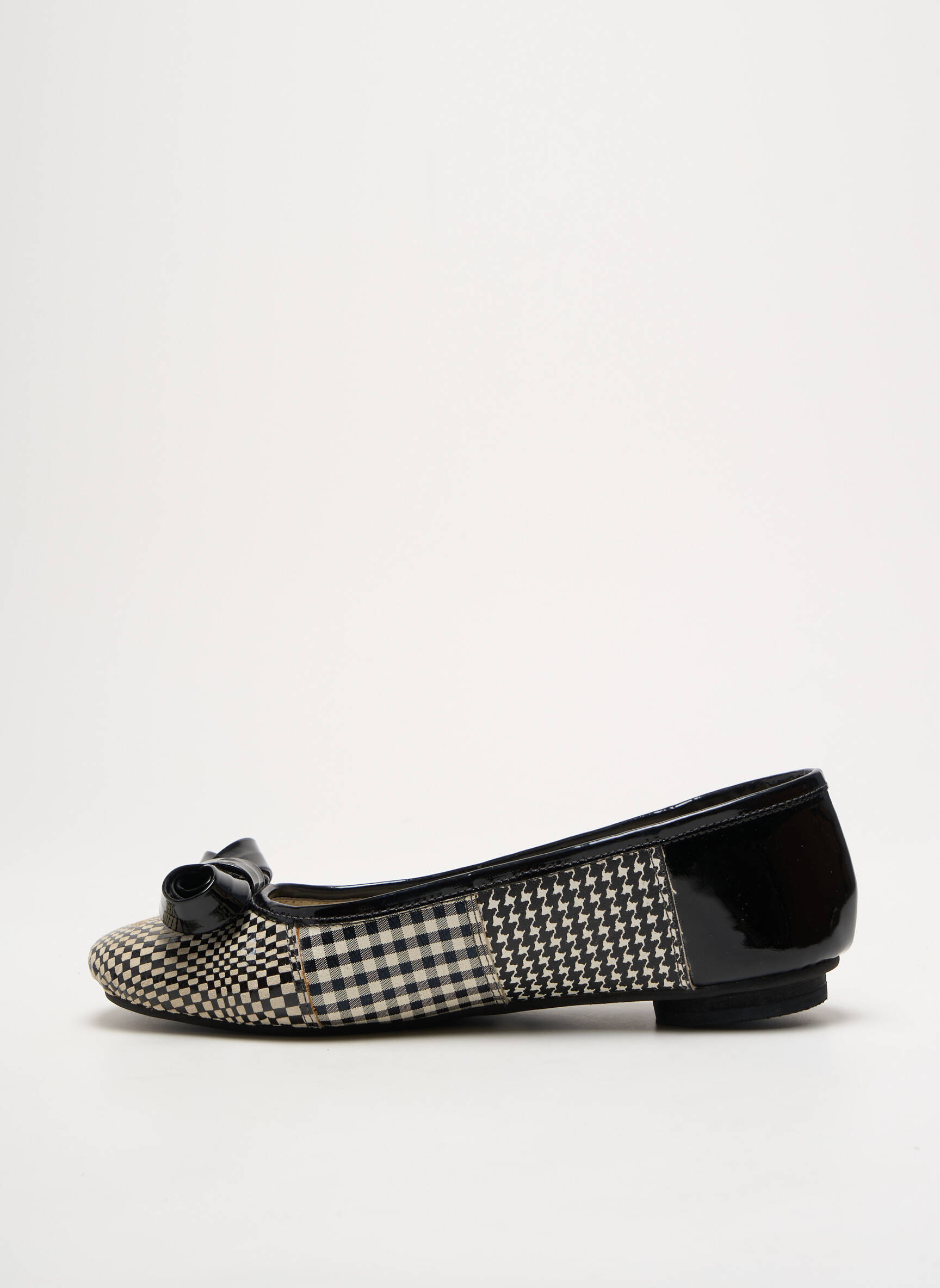 Craquez pour ces ballerines COULEUR POURPRE à prix mini, une véritable aubaine pour ajouter une touche d’originalité à votre dressing sans vous ruiner. Avec leur mélange unique d’imprimé vichy, de motifs graphiques noirs et blancs et leur élégant bout verni orné d’un petit nœud, elles promettent un style affirmé et plein de fraîcheur, parfait pour dynamiser toutes vos tenues du quotidien à prix malin.