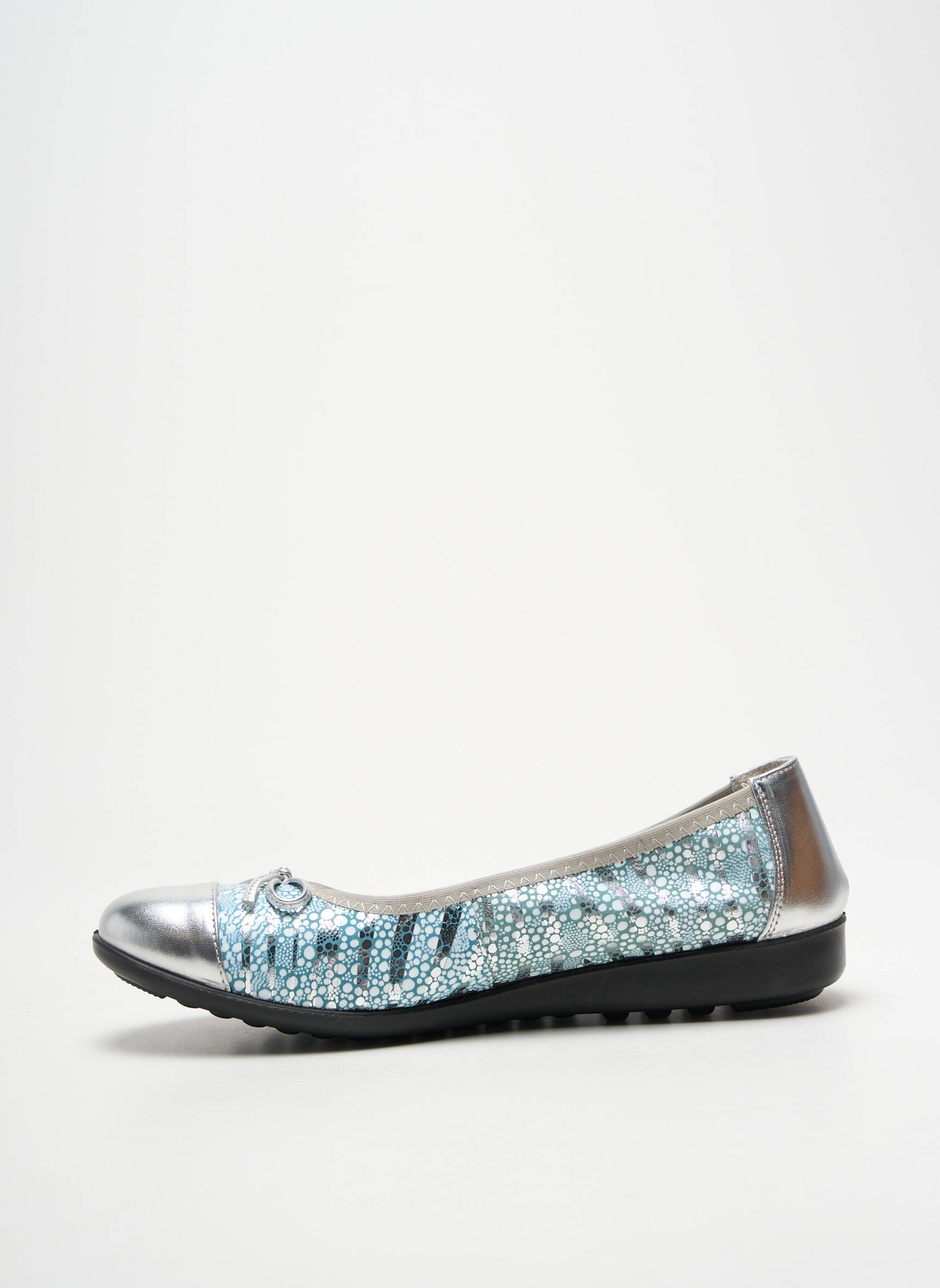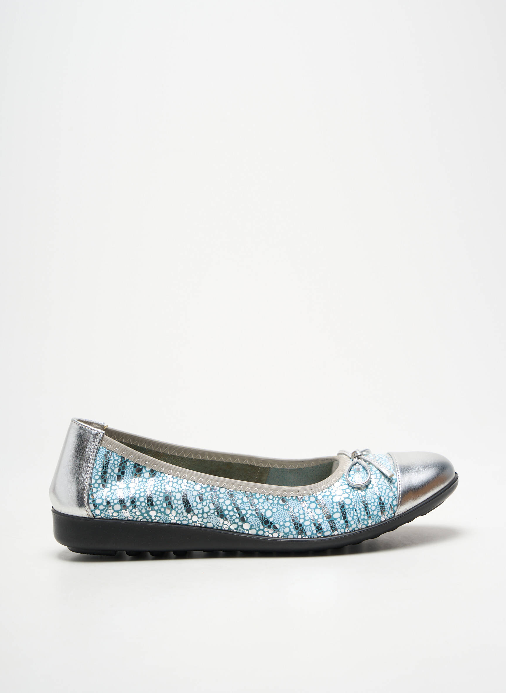 Craquez pour ces ballerines INEA pour femme qui allient style et petit prix, idéales pour ajouter une touche d’éclat à toutes vos tenues sans vous ruiner. Leur design élégant associe un effet métallisé argenté et un jeu de textures bleu scintillant, rehaussé d’un petit nœud raffiné à l’avant, parfaites pour apporter une note sophistiquée et tendance à votre look tout en réalisant une vraie bonne affaire.