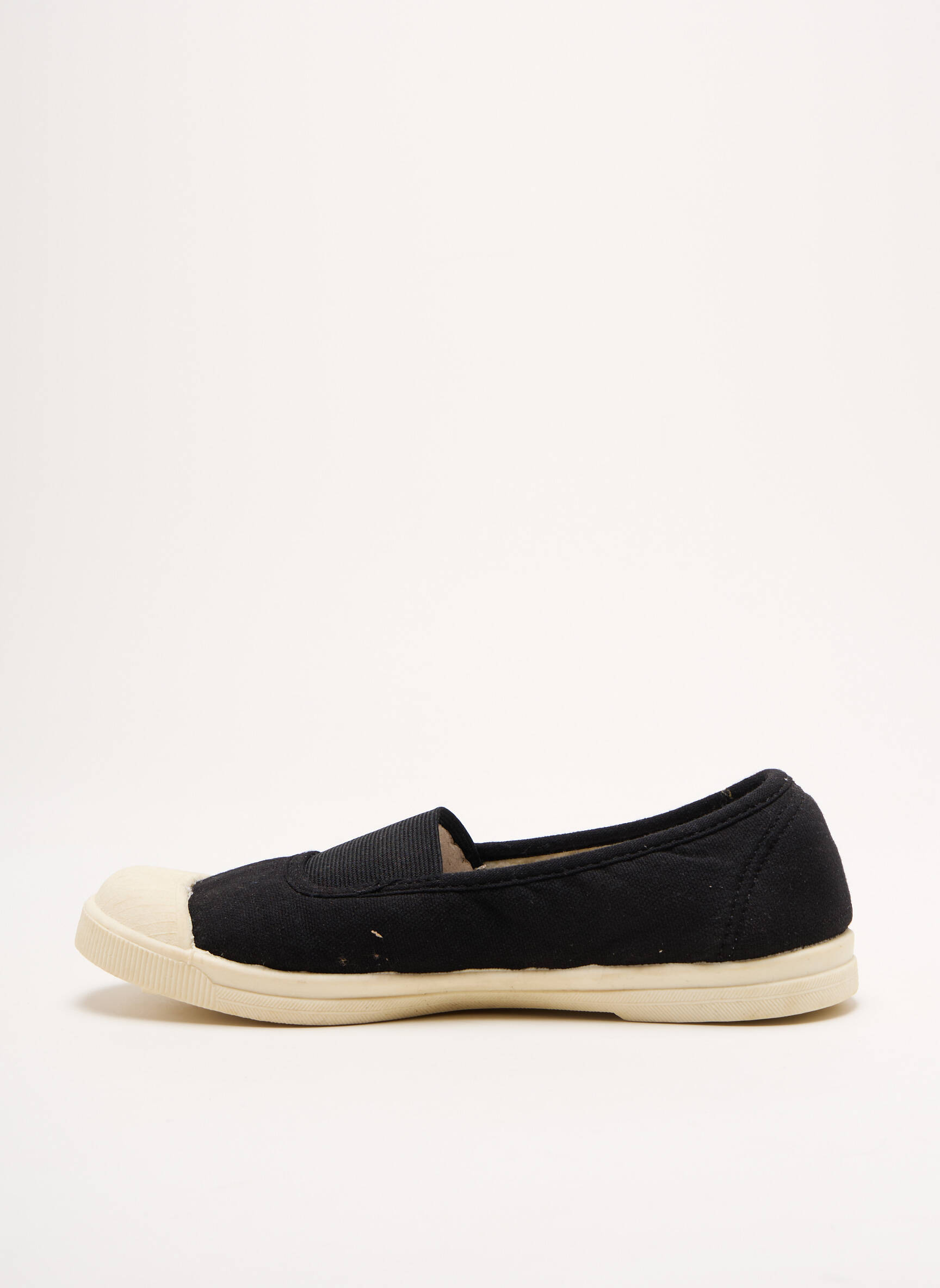 Et si vos pieds retrouvaient enfin la légèreté d’une promenade en bord de mer grâce à ces ballerines LES TROPEZIENNES PAR M.BELARBI ? Elles associent une toile noire élégante à une semelle et un bout renforcé couleur crème, pour un contraste subtil et un confort décontracté. Leur ligne épurée se mêle parfaitement à une touche d’originalité avec ce détail en bout renforcé qui rappelle l’esprit marin, idéal pour réveiller un style casual avec finesse.