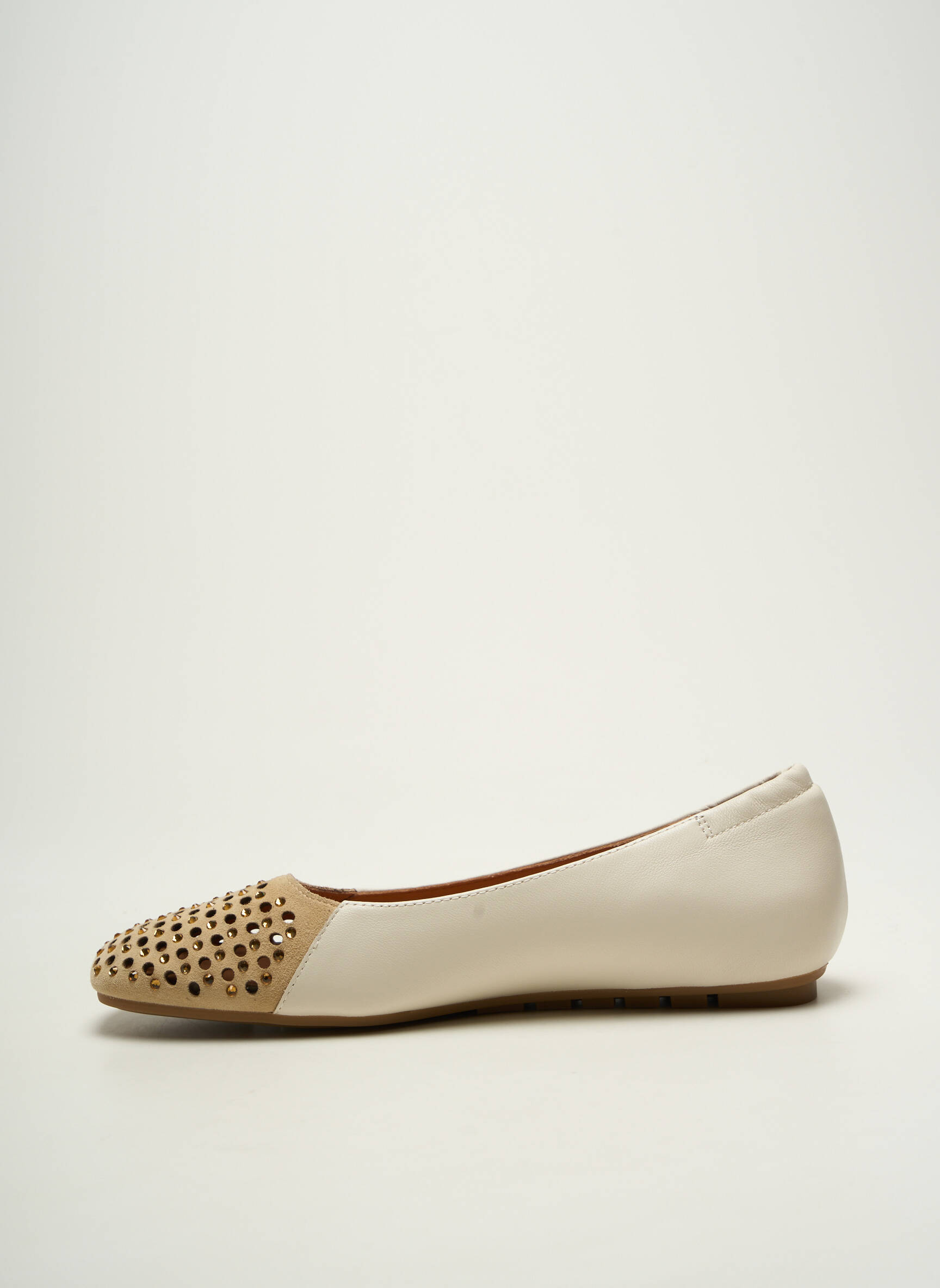 Profitez d'une véritable opportunité avec ces ballerines MAM'ZELLE pour femme, idéalement pensées pour celles qui recherchent le style sans compromis sur le prix. Ce modèle au coloris crème délicat se distingue par son bout orné de petits clous dorés qui donnent tout de suite une touche moderne et raffinée à votre tenue, tout en restant très facile à associer au quotidien. Une belle occasion de vous offrir un accessoire tendance à prix mini.