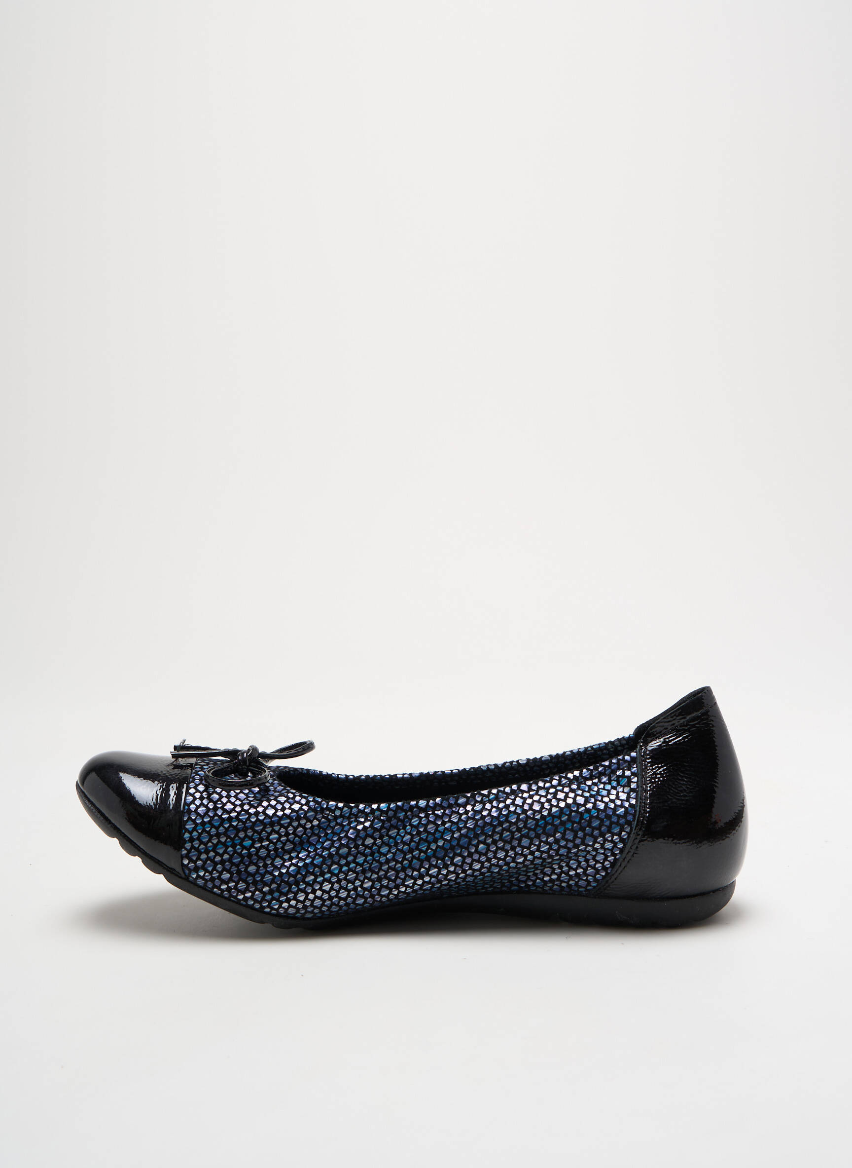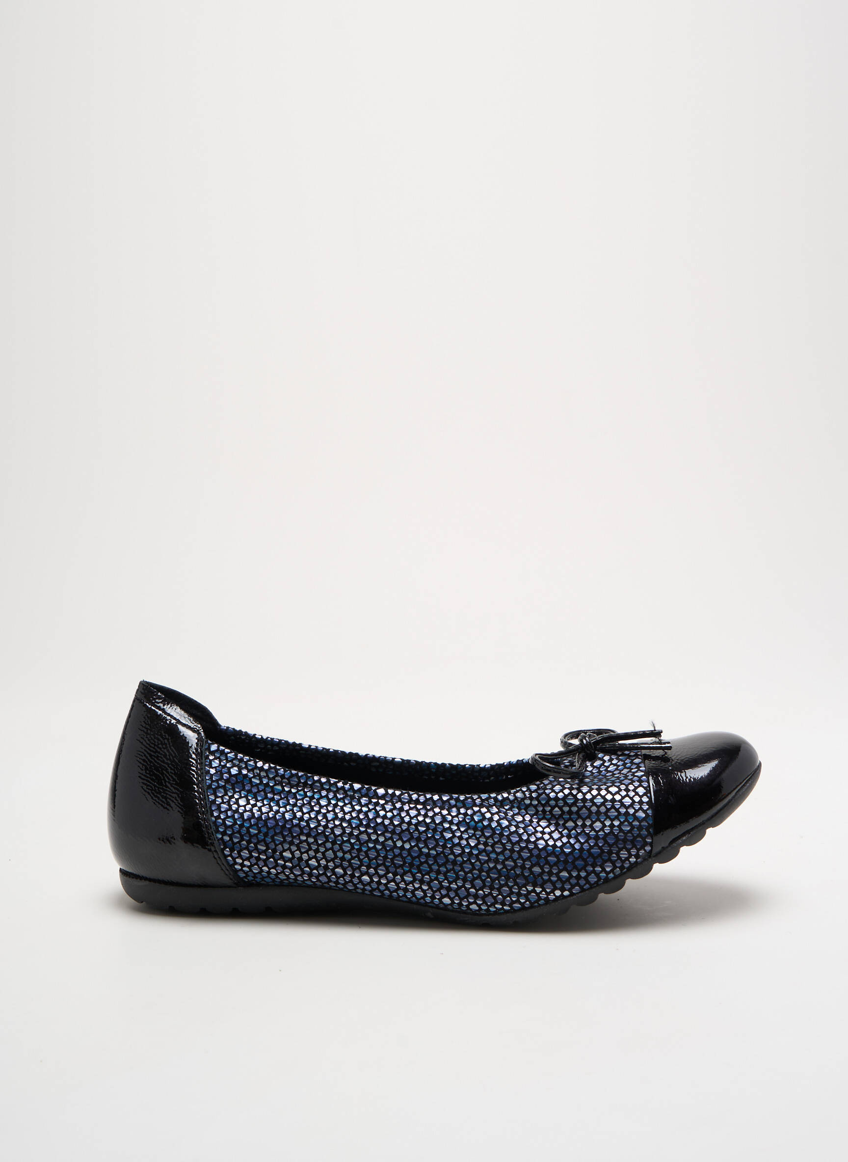 Profitez d’une offre exceptionnelle pour sublimer votre quotidien avec ces ballerines SABRINAS pour femme, parfaites pour allier confort et élégance sans se ruiner. Leur finition raffinée mêle un tissu bleu nuit parsemé de mini-motifs lumineux, rehaussé par un bout et un talon en vernis noir brillant, ainsi qu’un petit nœud discret à l’avant qui apporte la touche féminine. Ce modèle conjugue souplesse, style et prix mini, idéal pour celles qui veulent compléter leur garde-robe avec une pièce chic à petit prix.