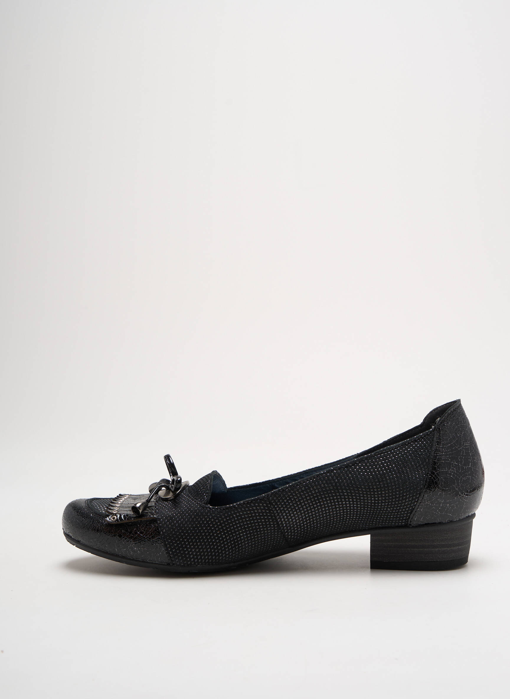 Profitez d’un super bon plan avec ces ballerines femme signées UN TOUR EN VILLE, une occasion idéale de renouveler votre garde-robe à petit prix. Ce modèle au design élégant se distingue par sa matière noire subtilement texturée et son petit talon confortable, parfait pour un usage quotidien. On apprécie le détail du nœud sur le dessus, qui apporte une touche féminine tout en restant sobre et facile à assortir avec toutes vos tenues. Voici une paire raffinée et confortable, à saisir sans hésiter pour allier style et économies au quotidien.