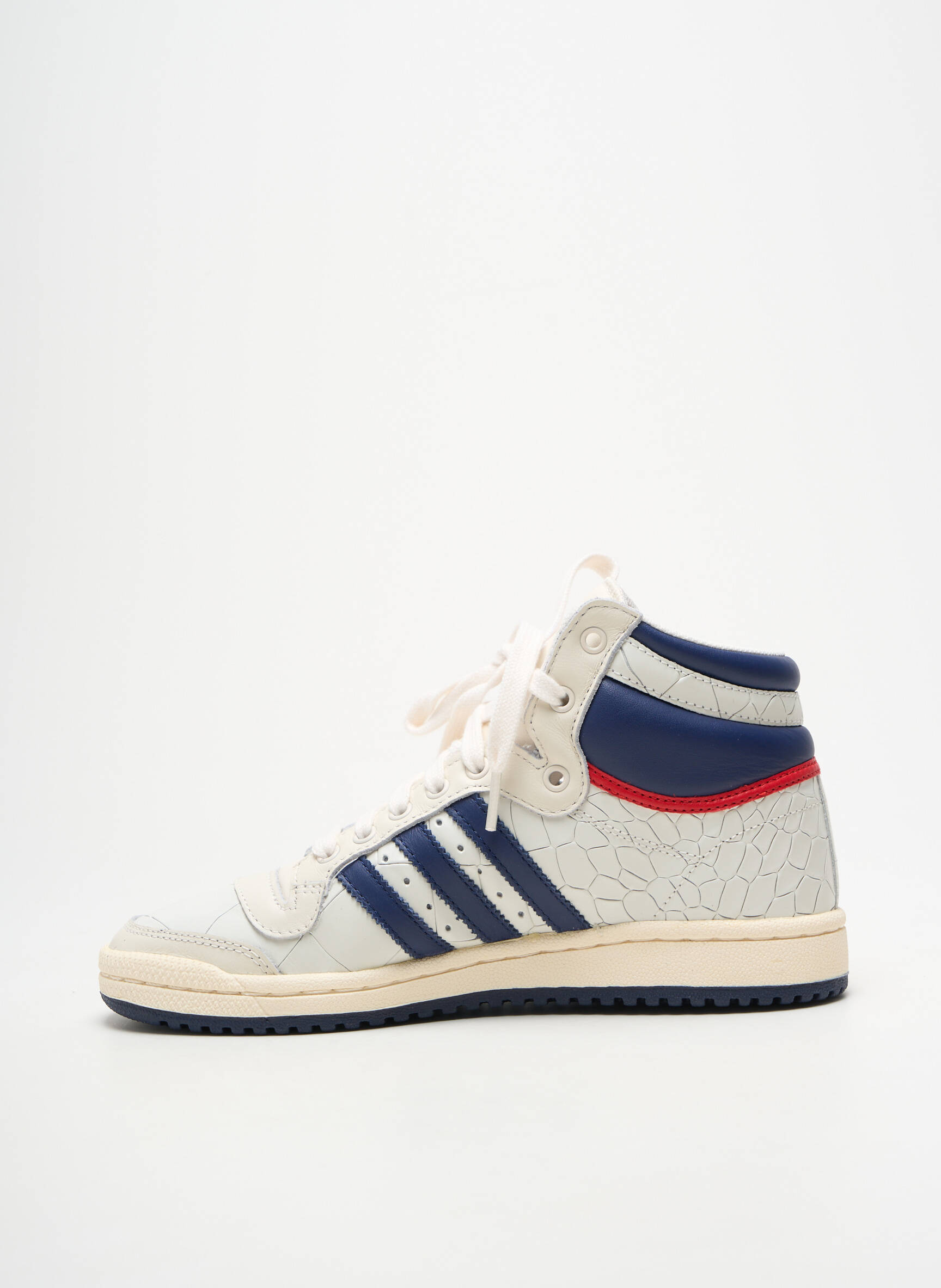 Profitez d’un bon plan à ne pas manquer avec cette basket Adidas pour femme, un modèle montante au style rétro affirmé. Sa silhouette blanche rehaussée par des touches de bleu marine et rouge, ainsi que par les célèbres trois bandes, apporte une touche sportwear tendance à toutes vos tenues. C’est la parfaite occasion de vous offrir une pièce iconique, confortable et originale, tout en réalisant des économies grâce à notre offre déstockage.