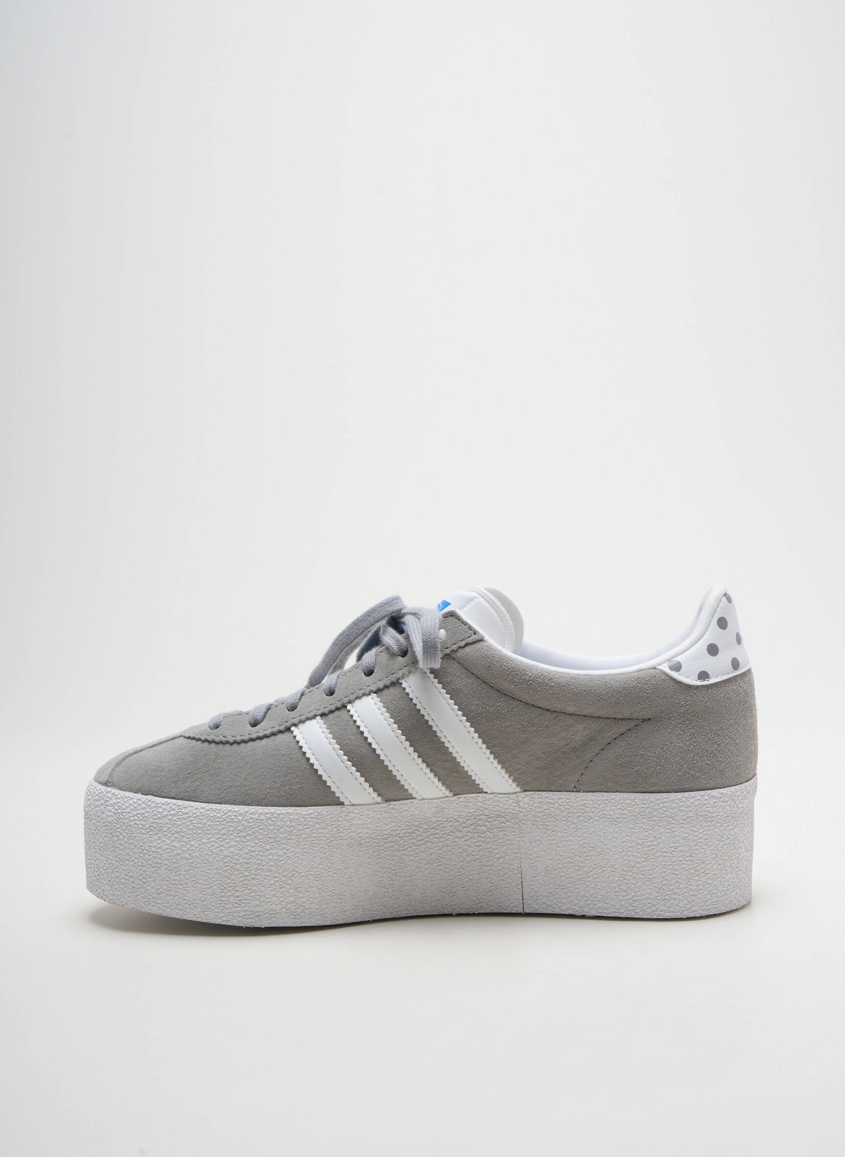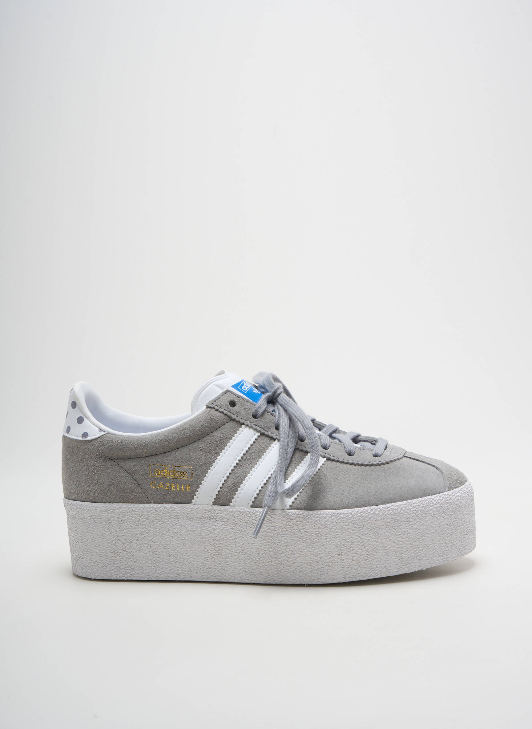 Profitez d’une occasion à ne pas manquer avec ces baskets Adidas pour femme proposées à prix mini, idéales pour ajouter une touche tendance à votre garde-robe sans vous ruiner. Ce modèle au design moderne joue sur les contrastes entre le gris doux de la tige en suédine, les célèbres trois bandes blanches et une semelle plateforme épaisse qui allonge la silhouette tout en garantissant un confort optimal pour toutes vos sorties. Les détails métallisés discrets, la languette griffée et le col arrière à pois ajoutent une note chic et originale à cette paire qui saura rehausser vos looks quotidiens avec une vraie touche sport-chic à petit prix.