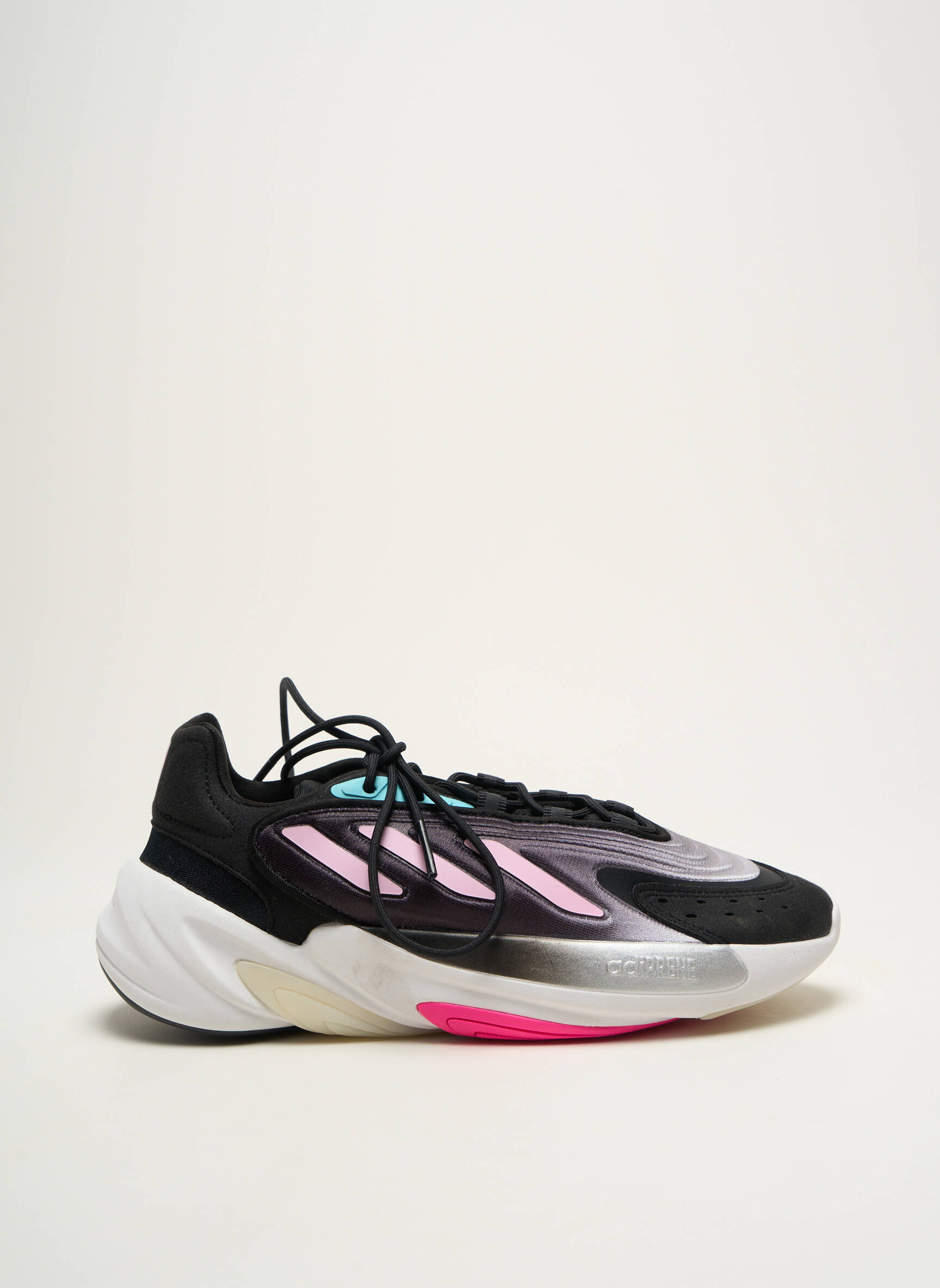 Craquez pour ces baskets ADIDAS pour femme à prix exceptionnel, parfaites pour celles qui aiment mixer style sportswear et économies. Ce modèle affiche une silhouette moderne aux lignes dynamiques, associant un noir élégant à des touches de violet métallique, de beige et de rose fluo sur la semelle, pour un look tendance et original sans compromis sur le confort. Profitez d’un bon plan mode et affirmez votre style avec ces sneakers ultra-graphique à petit prix.