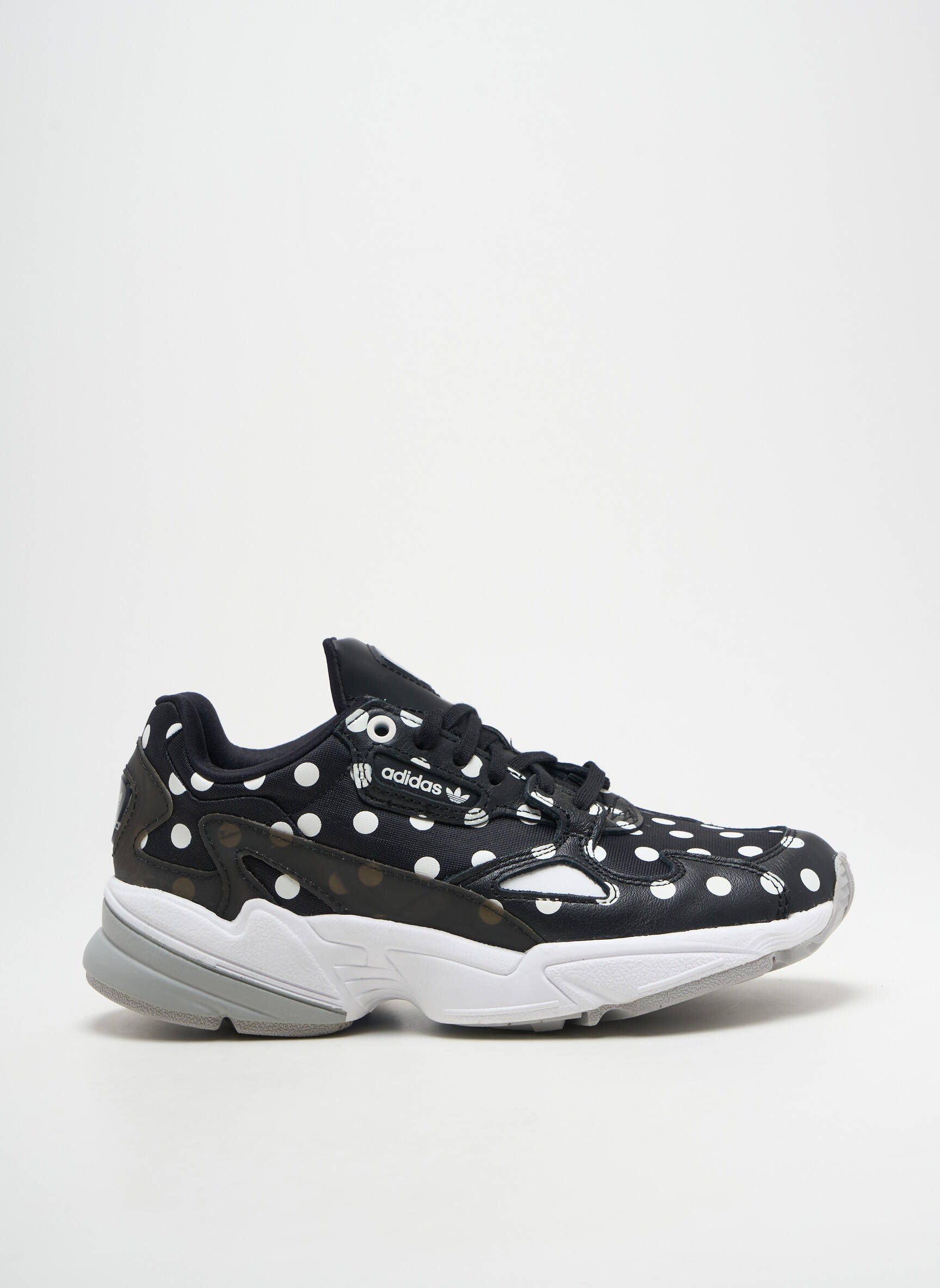 Profitez d’un bon plan exceptionnel avec ces baskets ADIDAS femme alliant style moderne et originalité, grâce à leur motif à pois blancs sur fond noir qui apporte une touche de fun à vos tenues du quotidien ; leur semelle épaisse assure un confort optimal tandis que leur design iconique vous démarquera à prix mini.